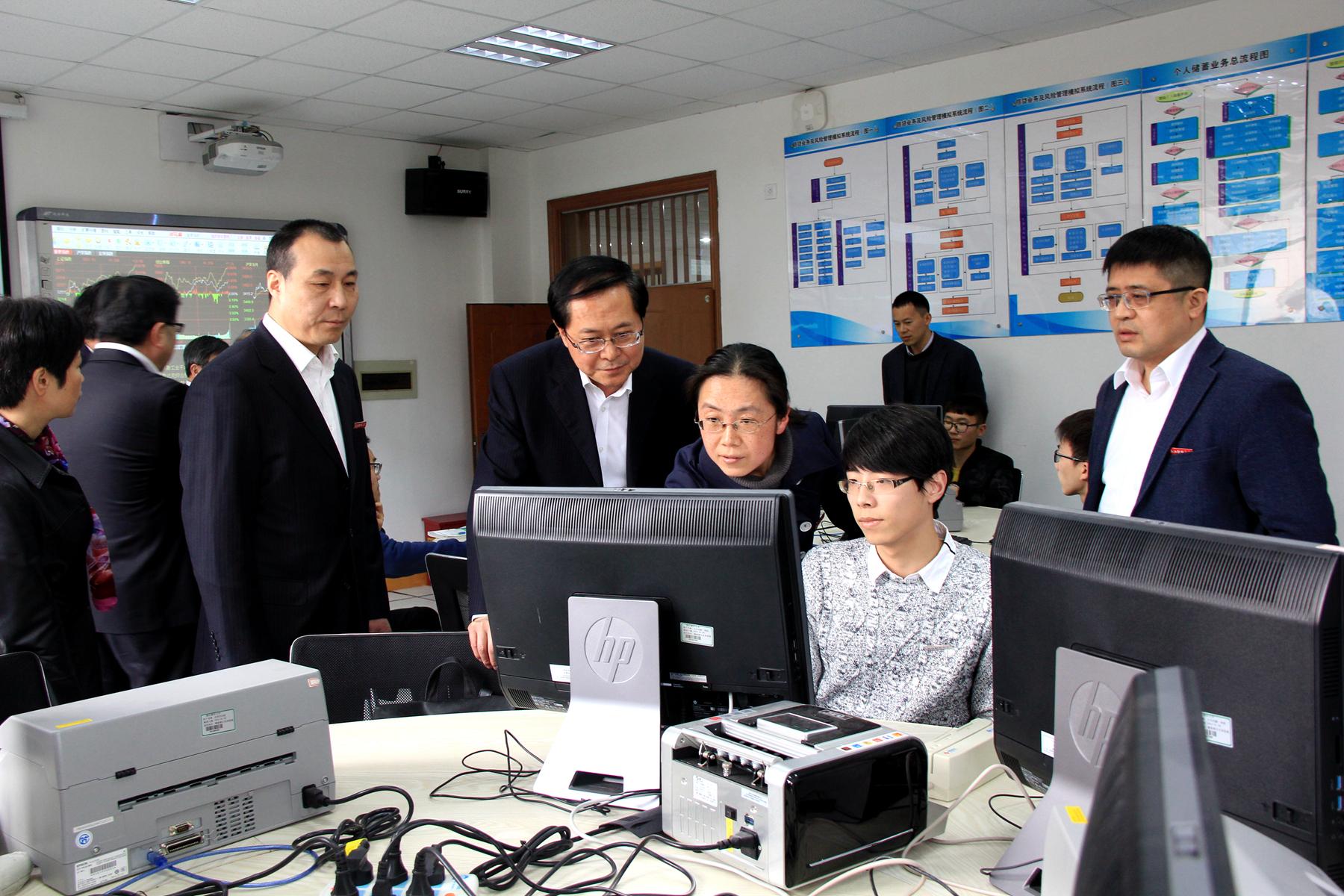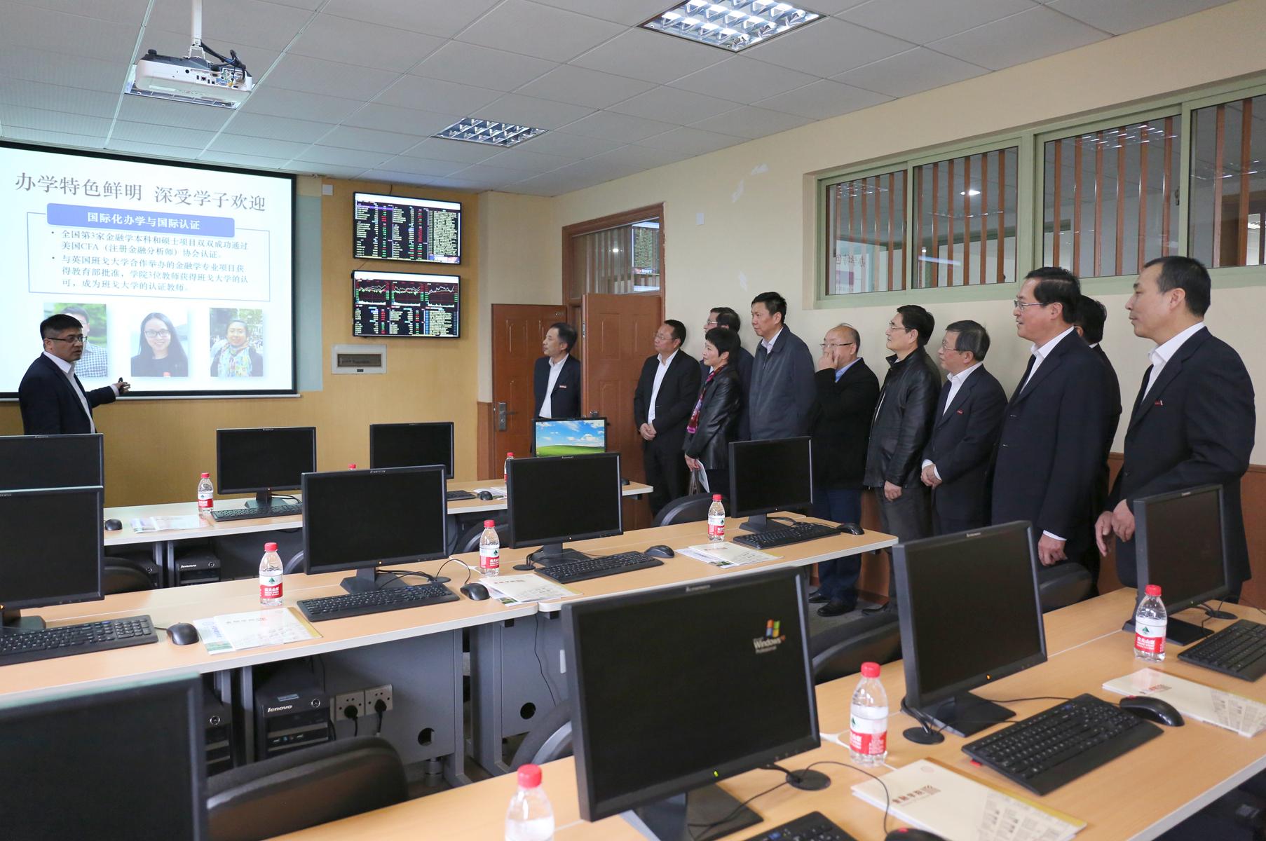 在参观金融工程与金融风险实验室、模拟银行实训基地时,车俊省长与师生亲切交谈,并对水果派