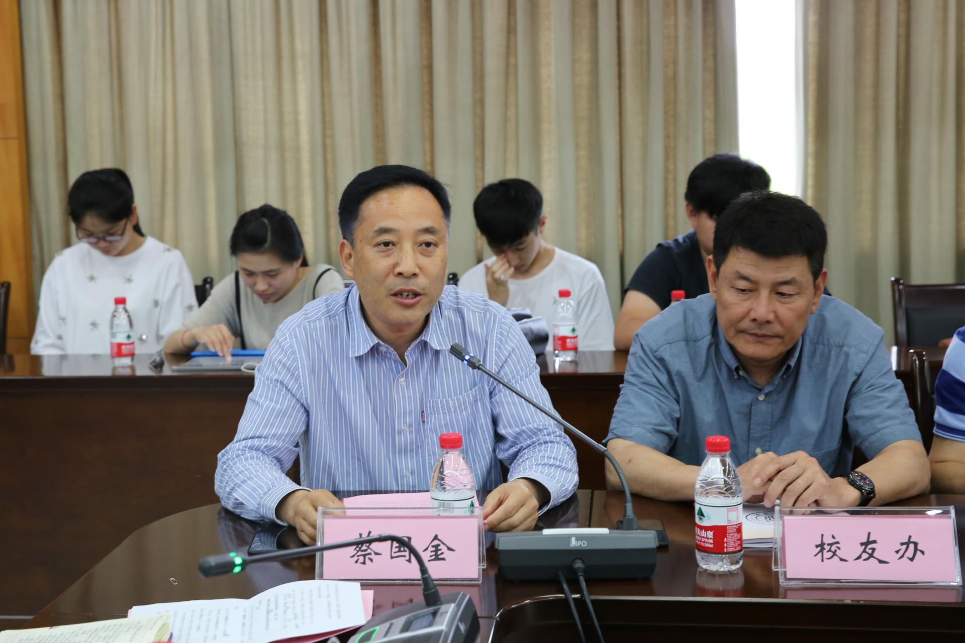 党委书记蔡国金在讲话中感谢校友及各职能部门对学院工作的支持,阐明了水果派