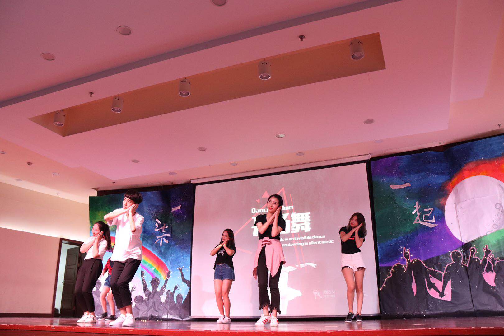 随着艺术团热情洋溢的开场舞,及班导们的创意走秀,晚会拉开了序幕。每一个新生班级都上演了精彩的节目,17中英金融二班的《红太阳青春舞曲》以强烈的反差萌夺取了全场的眼球,17投资班的小品《青春》与信管班的小品《面饰》赢得了台下观众的阵阵掌声,17金融二班的《古今八艳》带着观众穿梭时空,从古到今,将整个晚会推向高潮。随后,17金融一班的、17中英金融一班、17金融三班的、7保险班、17中英二班分别带来了独特的歌舞表演。