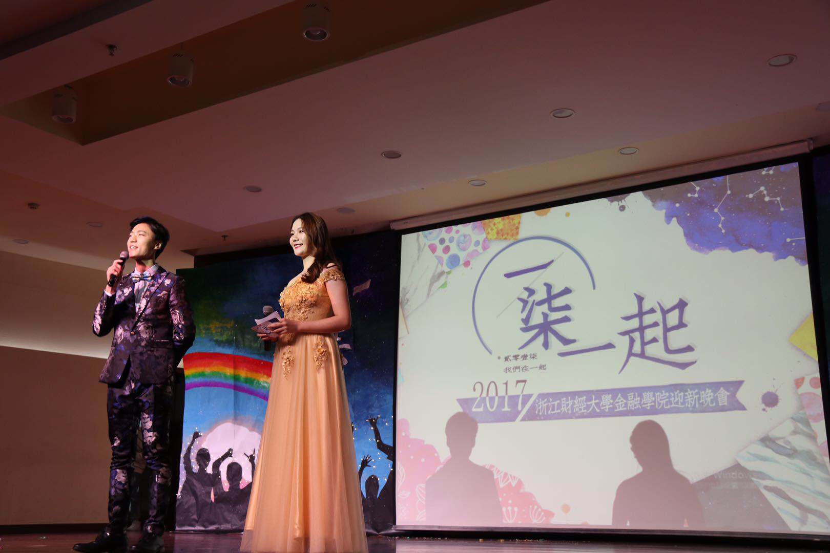 2017 级迎新晚会“一柒一起”在学术一报隆重举行。学院党委副书记叶秀、团委书记蒋超,新生班主任徐峰老师、刘玉芳老师,辅导员聂亚平、沈耀杰,以及全体2017级新生出席本次晚会。