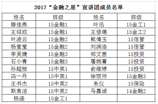 优秀朋辈人才资源,积极发挥优秀学生的榜样力量,学院在“金融之星”评比活动的基础上,组建 “金融之星”宣讲团,通过朋辈教育分享交流成长事迹,引领广大学生共同成长与进步。相信在不久的将来,一支由优秀金融学子组成的“金融之星”宣讲团将在水果派