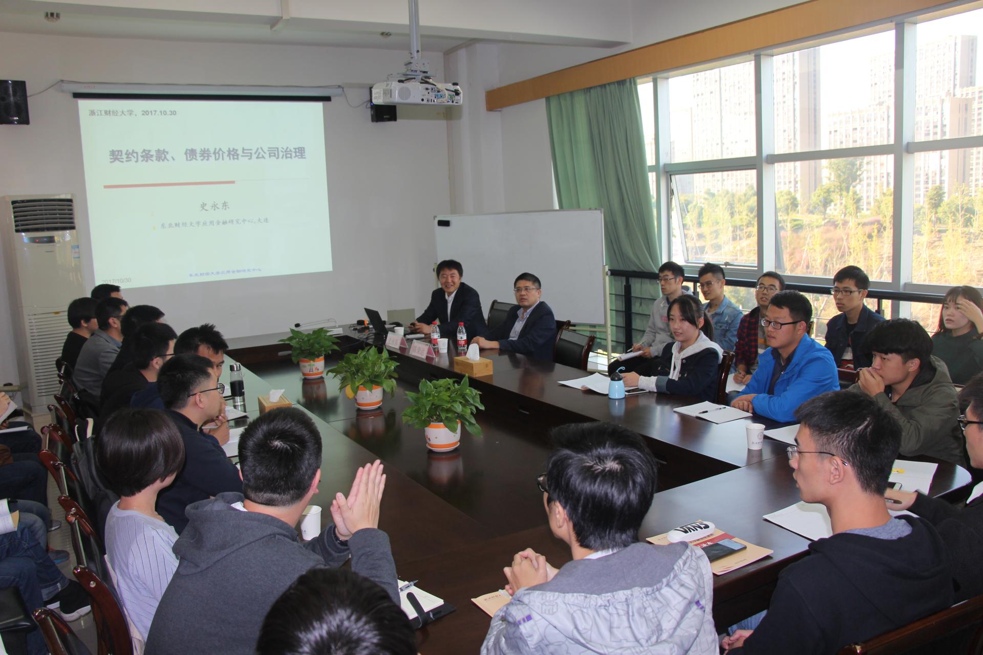 422会议室作了 “契约条款、债券价格与公司治理”的学术讲座。本场讲座由水果派