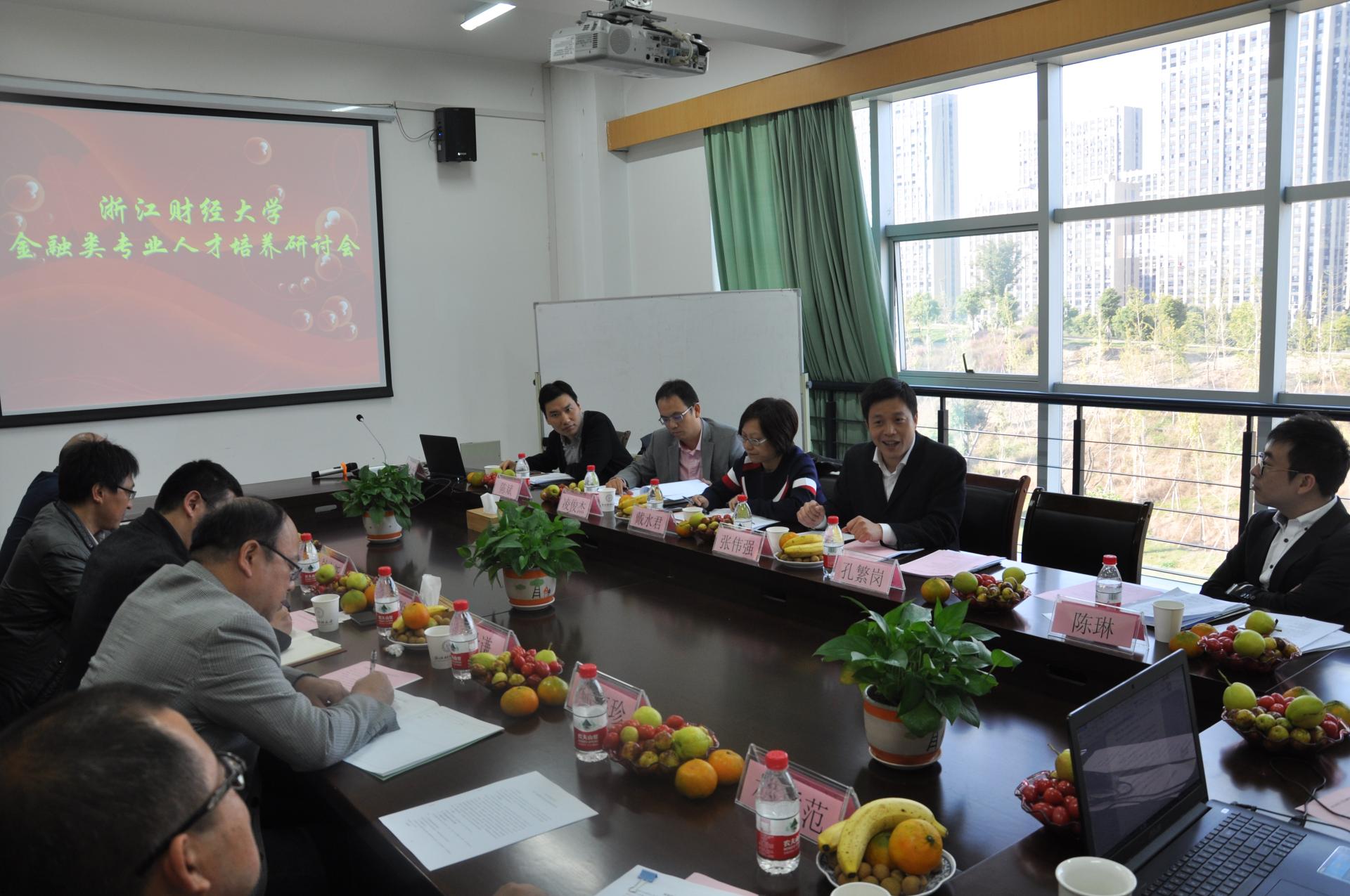 于2017年11月4日下午在学院422会议室组织召开了金融类专业人才培养方案研讨会。杭州欢泰健康管理执行董事长张伟强先生、金石资源集团副总裁兼董事会秘书戴水君女士、盈阳资产管理总经理孔繁岗先生、巴沃资产管理董事长凌俊杰先生、大唐财富杭州分公司总经理江鸥先生、融至道投资管理咨询总裁陈琳先生、广发银行浙江省分行办公室主任陈斌先生、 水果派
