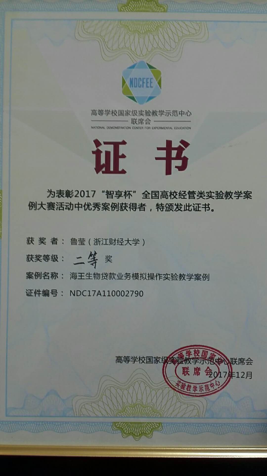 水果派 鲁莹老师的“海王生物贷款业务模拟操作实验教学案例”在2017第二届“智享杯”全国高校经管类实验教学案例大赛决赛中喜获二等奖