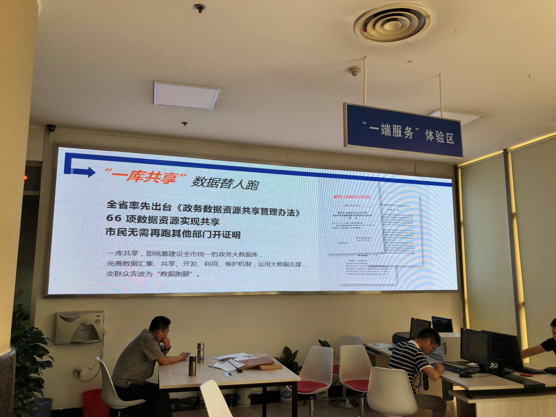 调研首日,温州市政府行政审批处吴明通处长向团队详细介绍了温州市 “最多跑一次”改革成效。次日,团队成员参观了温州市行政审批中心,对群众和工作人员进行了访谈,深入了解目前审批环节的运行机制和群众满意度。行政审批处工作人员张女士为团队成员展示了行政改革的直观成效。