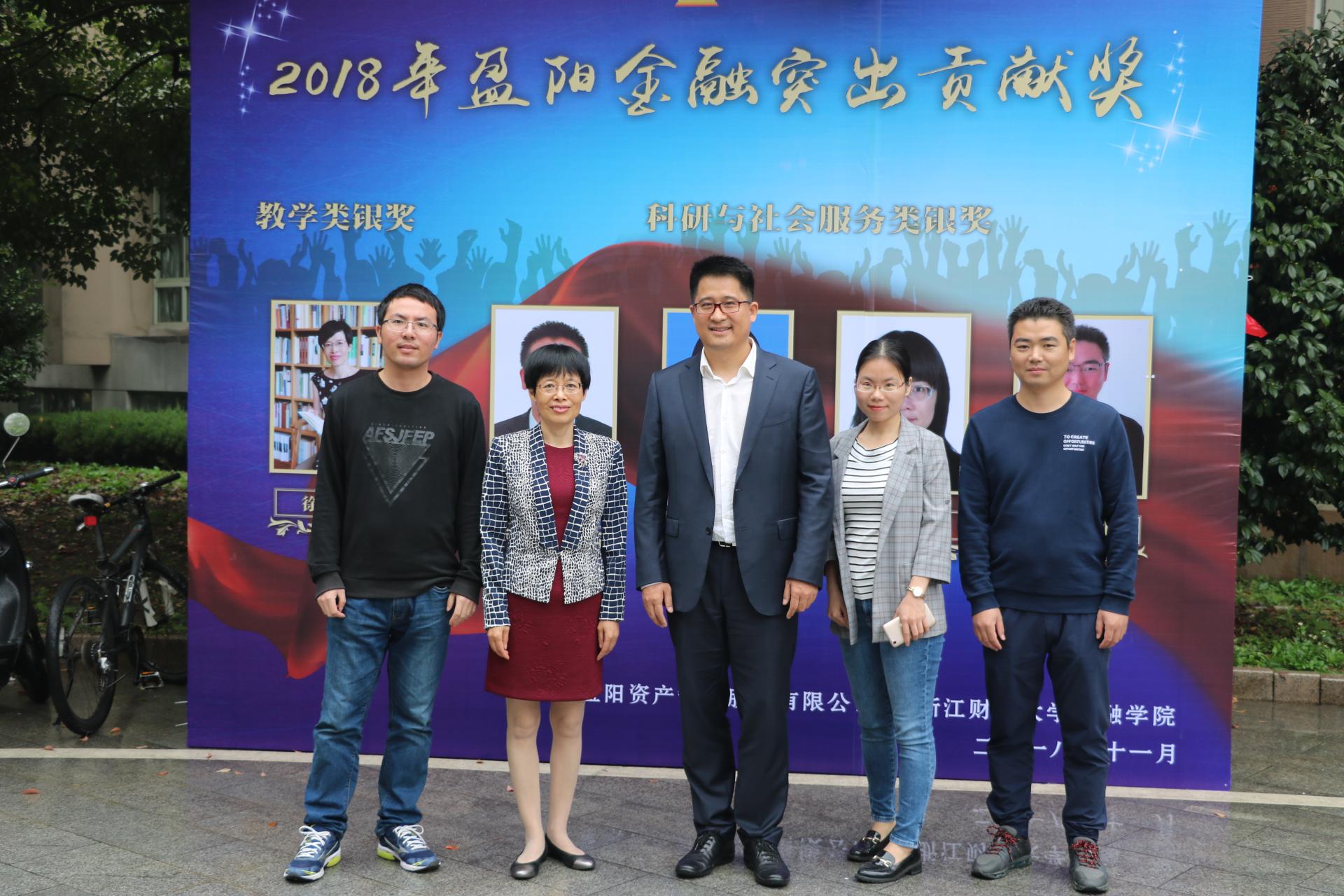 党委副书记叶秀以及校友代表等出席了本次大会。经过评审,徐敏老师获得2018盈阳金融突出贡献奖教学类银牌,林祺老师、金伟老师、蔡晓慧老师和吕剑老师分别获得科研与社会服务类银奖。蔡国金书记、楼栋校友和获奖老师代表林祺老师分别发表讲话,表达了对学院的感谢和盈阳资产未来发展的美好期待。