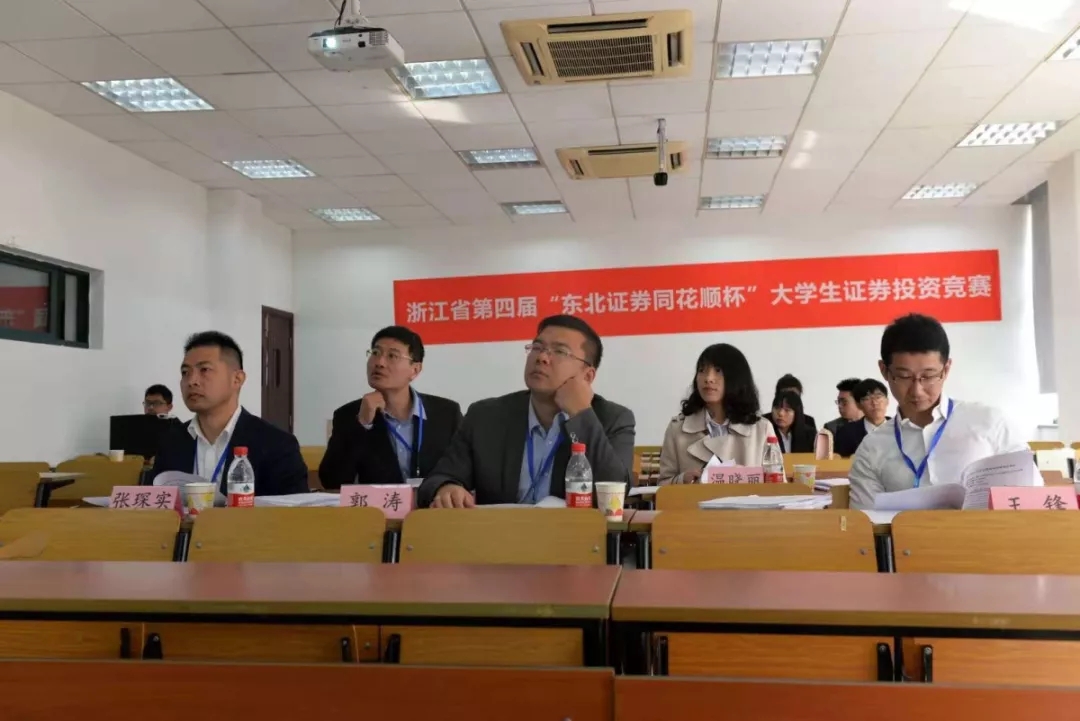 11月9日至10日,浙江省第四届“东北证券同花顺杯”大学生证券投资竞赛团队赛决赛在浙江工业大学屏峰校区举行。浙江省大学生证券投资竞赛是浙江省金融学科唯一的省级A类竞赛。浙江省大学生证券投资竞赛前身是浙江财经学院模拟股市竞赛,始于1997年,经过近20年的发展,该竞赛的规模逐步扩大,已经成为具有广泛参与度、较大影响力、对接金融业界的大型学科竞赛。本届大赛由浙江省教育厅、浙江省大学生科技竞赛委员会主办,浙江证券业协会指导,浙江省大学生证券投资竞赛委员会、水果派