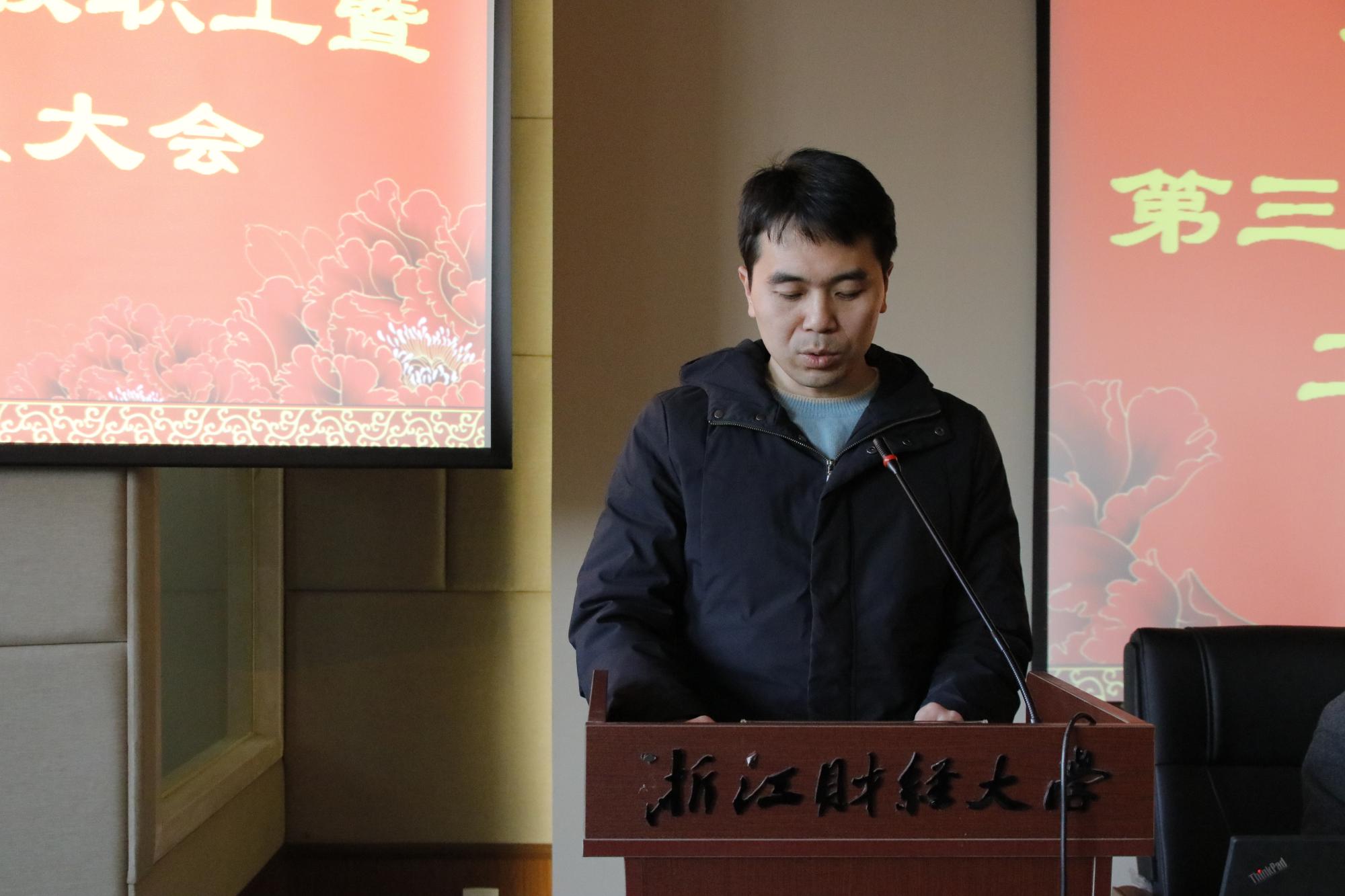 第三届全体教职工暨工会会员大会第一次会议在学院楼202报告厅隆重举行。校工会常务副主席李训茂、学院领导班子及全体教职工出席了此次会议,会议由学院党委副书记谢敏主持。