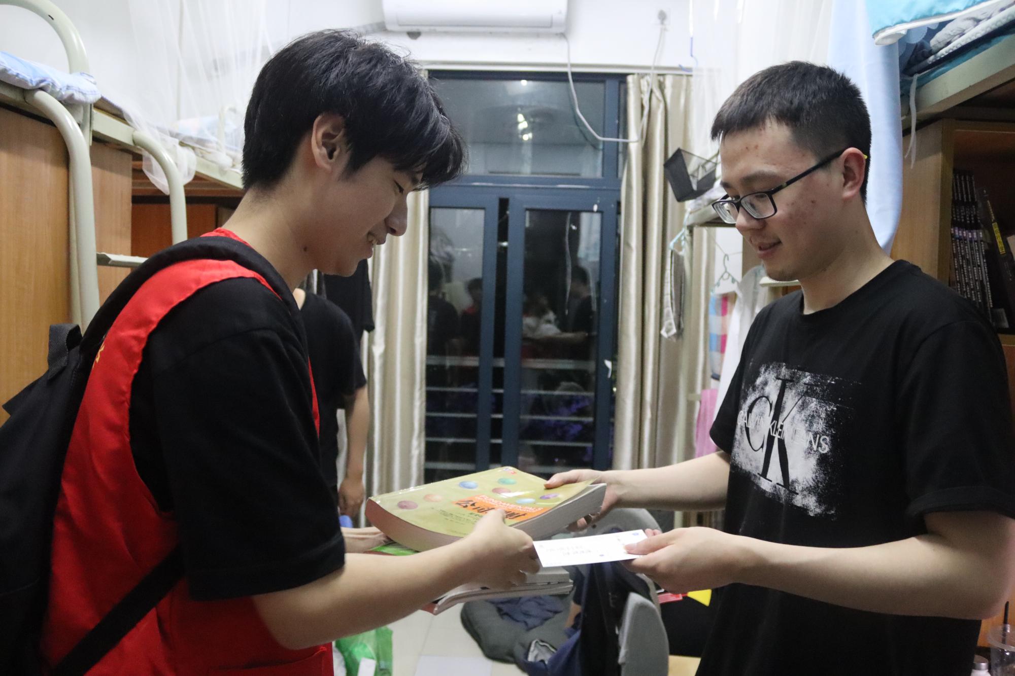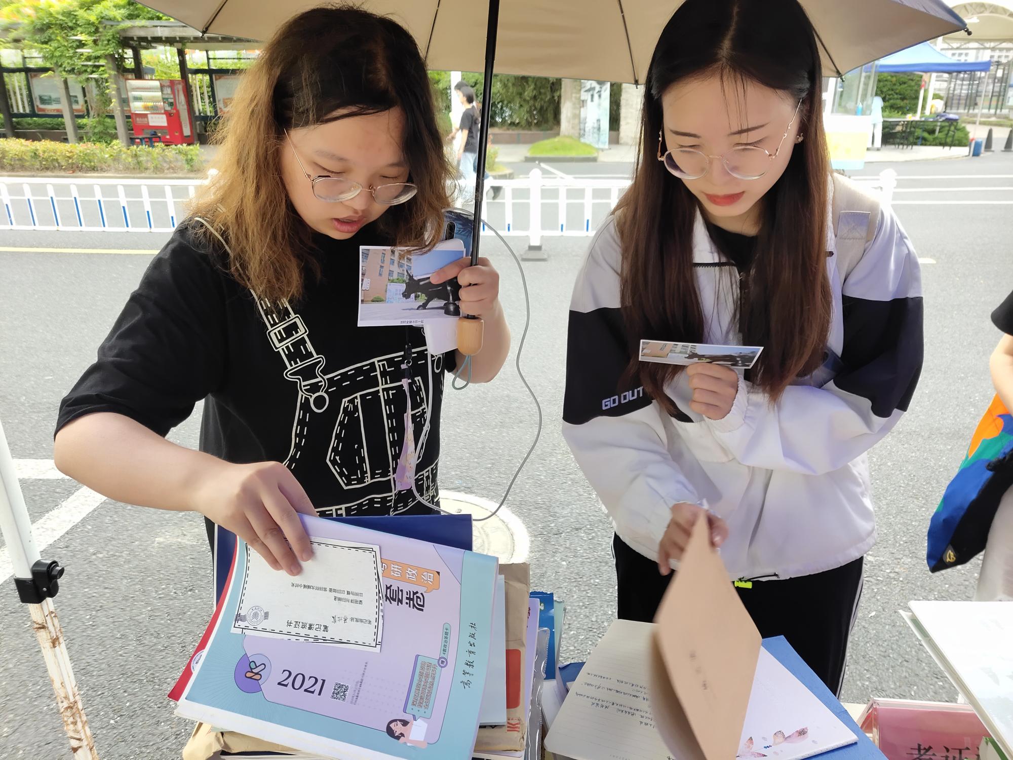 “笔记没有多少,但是这些个教材上圈点勾画的都是很重要的知识点。这个辅导书,自己买要百来块,你们可以拿去发给学弟学妹们。哦,还有这个……”今年考研顺利上岸的学长对学生会的同学们说道。短短两天,就有近70名毕业生捐赠教材、参考书等各类书籍及个人笔记300余本,价值逾万元。每位参与活动的毕业生获得了来自学弟学妹的祝福贺卡和学院特别定制的捐赠卡。