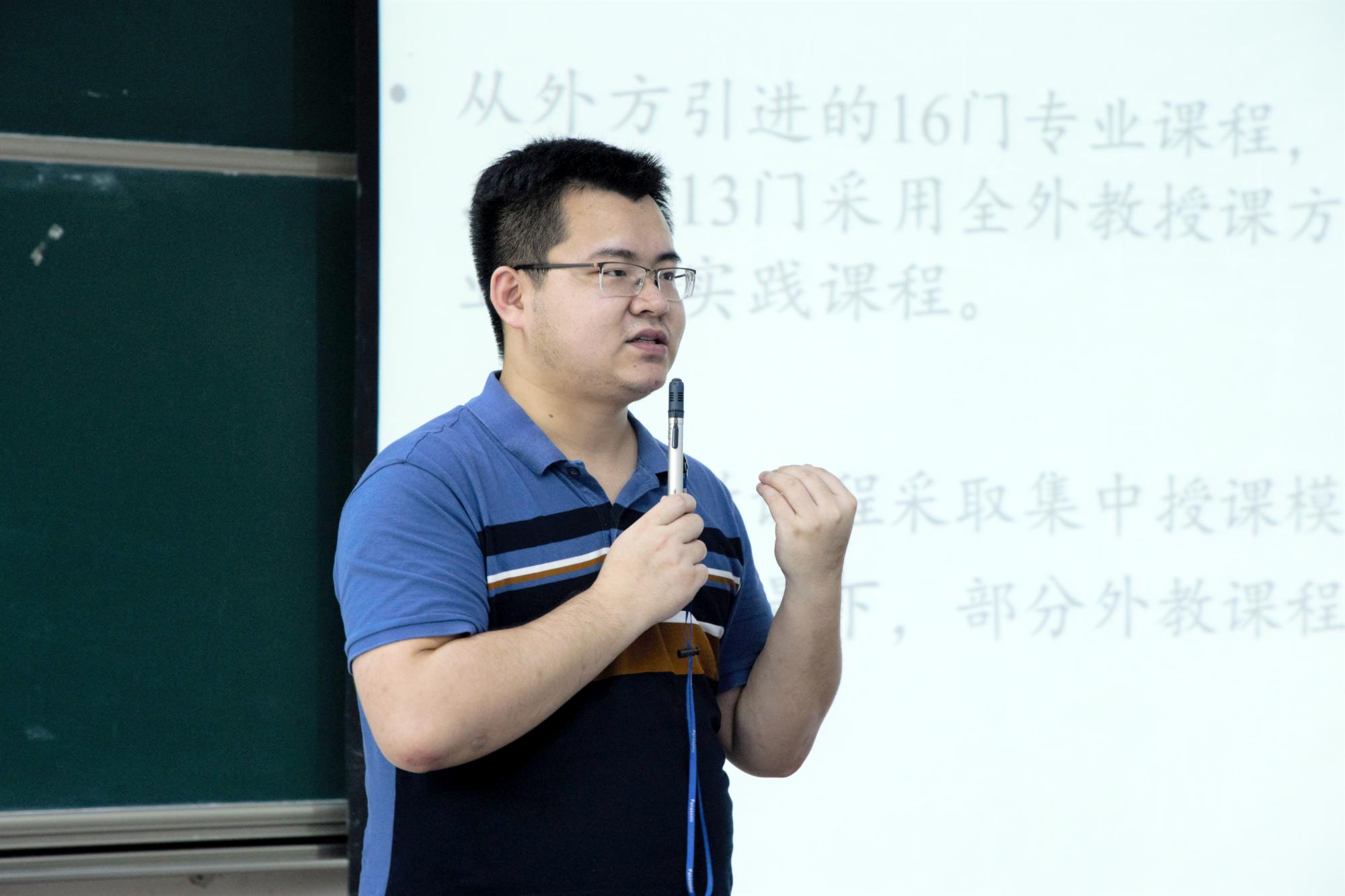 在金融大类专业认知教育开展的同时,国际教育中心主任党超老师在分会场为中英金融专业的同学们进行着金融学(中外合作办学)项目的介绍,他详细介绍了中外合作办学项目包含的课程内容及培养模式。