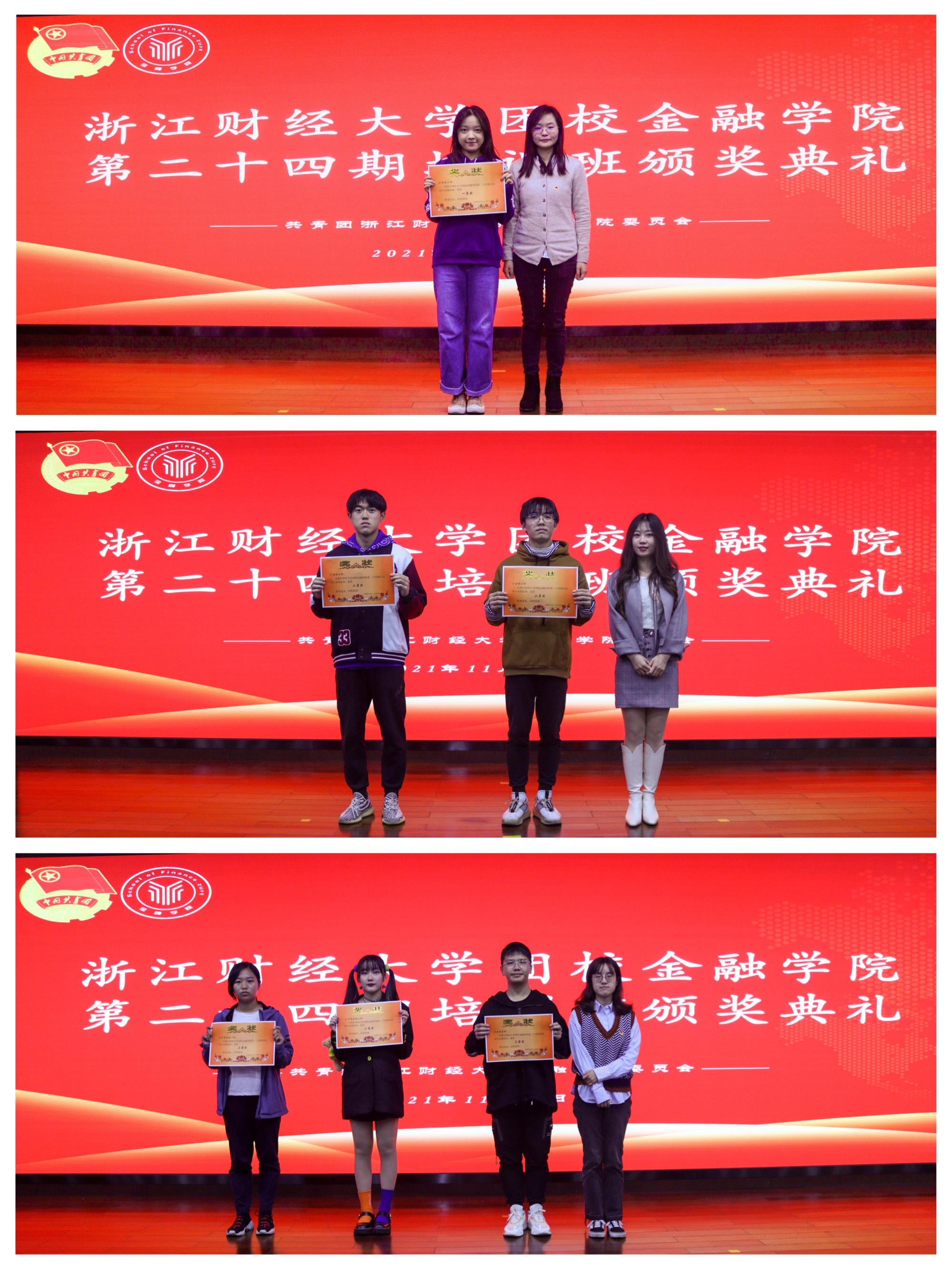 三讲团课结束后,学院团委组织了结业考试。根据各班团课学习总体情况及结业考试分数进行综合评价,学院评选出“团课优秀团支部”和“团课优秀学员”。11月20日在学术四报举行了颁奖典礼,王伟伟老师,谢琳老师和沈晓云老师为获奖班级颁发荣誉证书。
