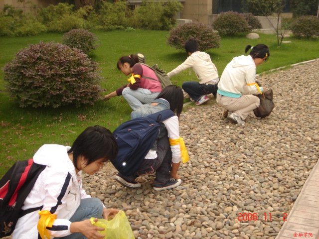 此次由水果派 分团委学生会主办的“寝室邻居节”之“园区劳动日”活动,旨在号召大家美化校园,从小事做起,从我做起,从一点一滴做起。下午集合以后,所有水果派 大一的新生分头行动,在每个角落,我们总能发现一个个弯腰的身影,他们脸上的笑容是劳动的喜悦,是奉献的快乐!有人驻足道:“黄丝带又在行动了!”现在,当我们走在校园里,你是否也会感慨那么清洁的校园,那么优越的学习环境呢?让我们一起美化我们的校园!