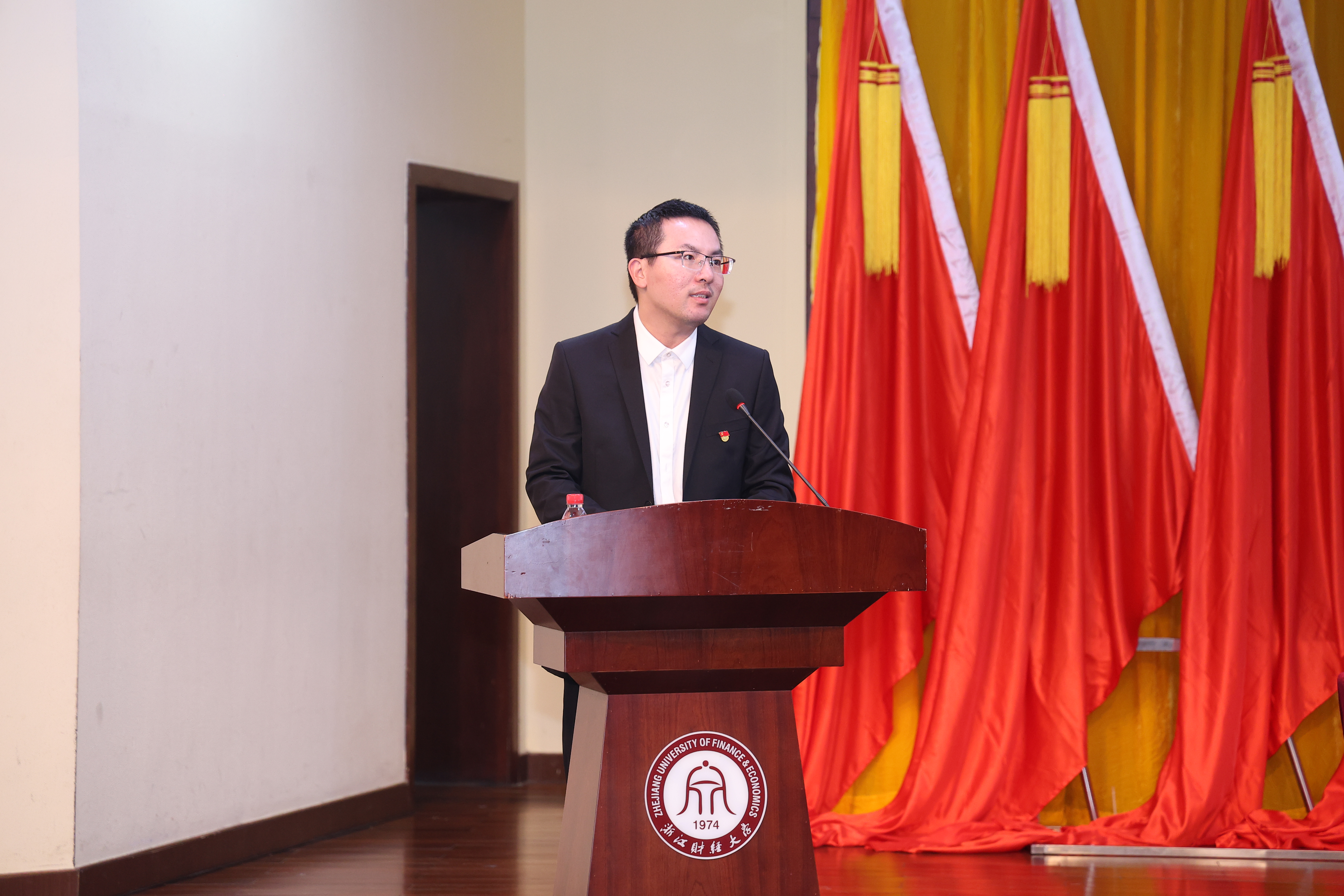 、盈阳金融科技学院领导班子成员,学院民主党派成员代表及师生党员200余人参加大会。大会由学院党委副书记、纪委书记陈思佳主持。