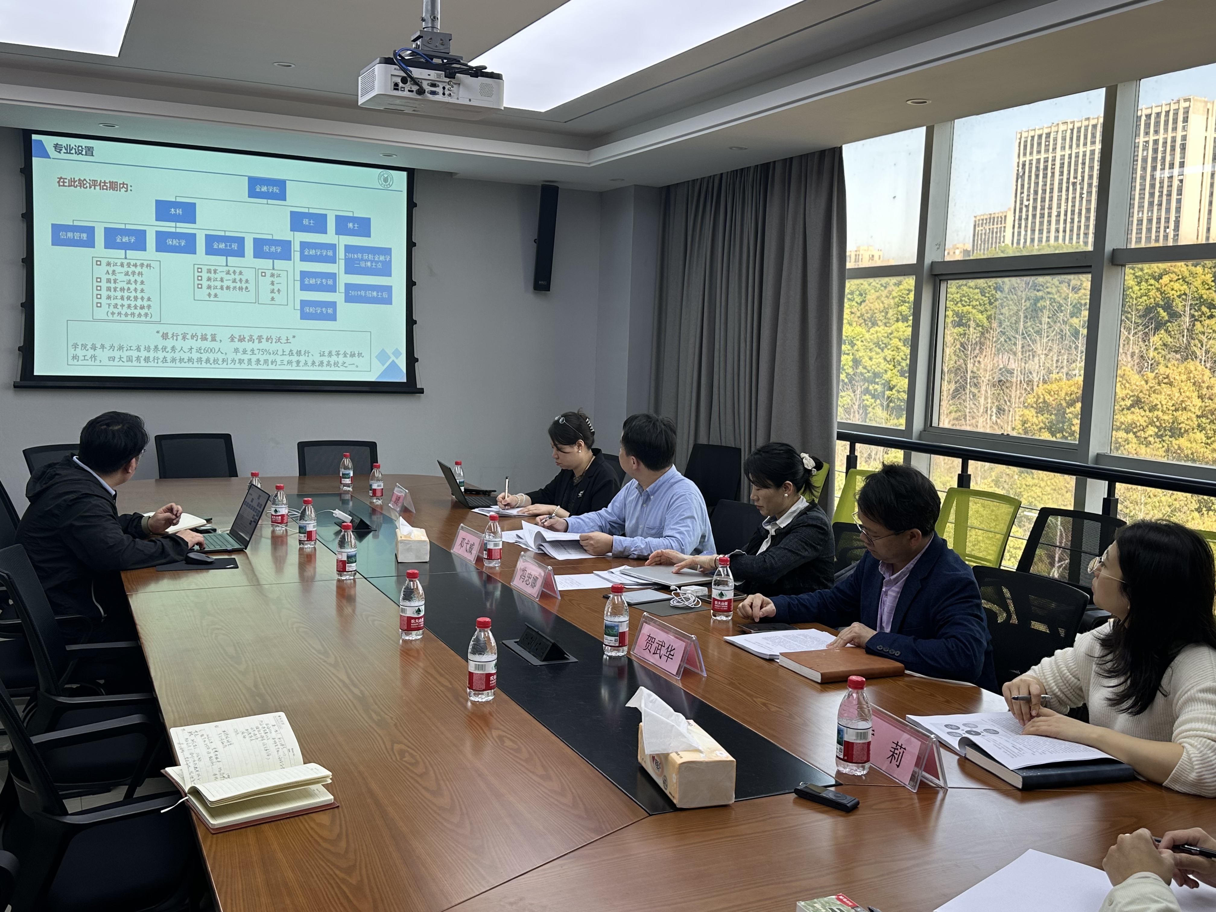 指导评估工作。教务处处长贺武华、教务处副处长(专聘副职)黄莉、学院领导班子、教师代表及学生代表参加了评审会,会议由学院副院长金骋路主持。