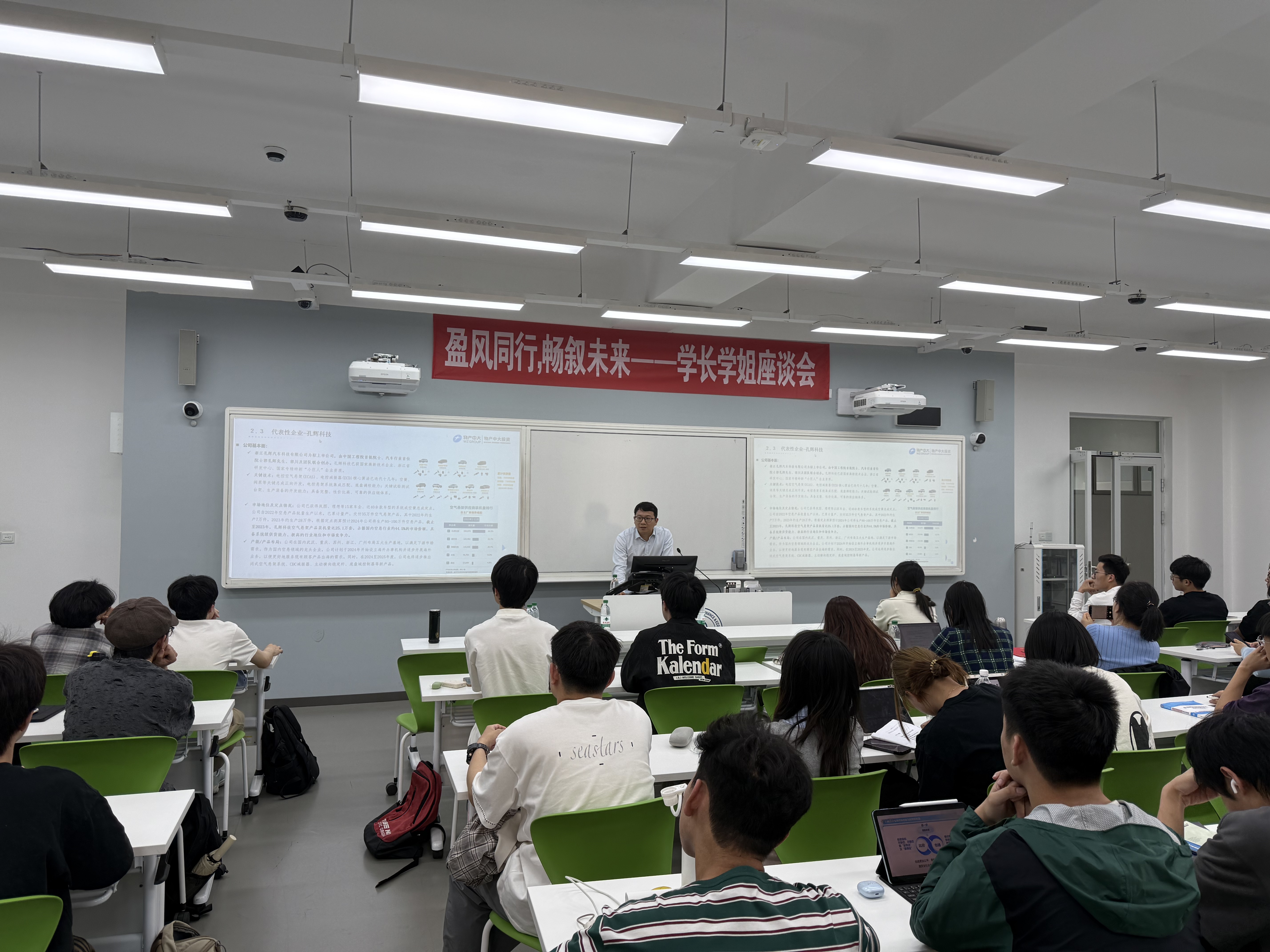 周梁先生讲座题为“投研结合的工作实践及案例分享”,结合汽车空气悬架研报案例讲投研结合的工作方式,细致翔实地展示了项目筛选、尽职调查及最后投资落地的全过程,深度解剖了如何做技术和产品分析、企业分析、行业分析,以及投资后的持续增值服务。使同学们深刻领悟研报如何结合投资项目,达到了窥一斑而知全豹的效果。