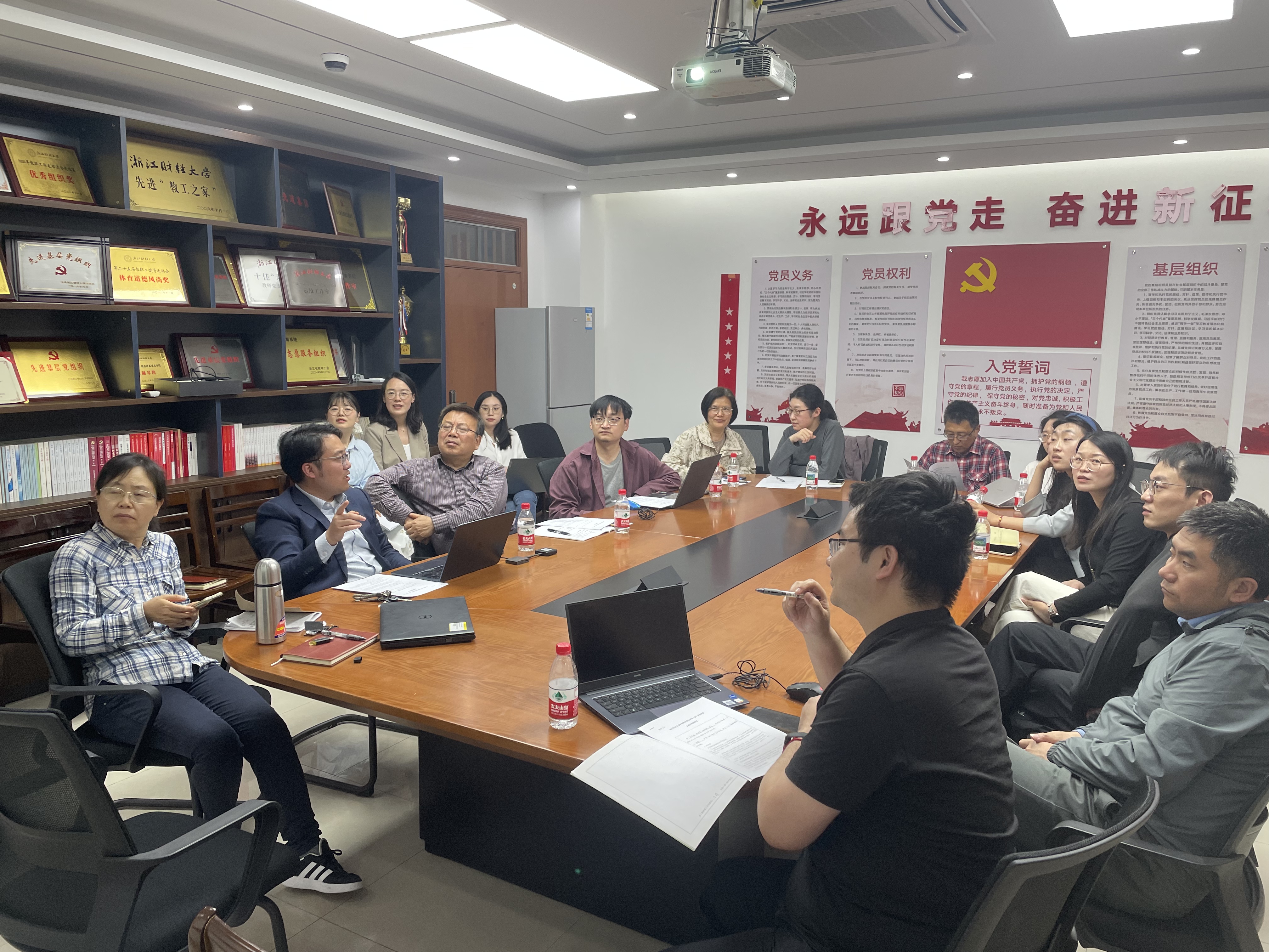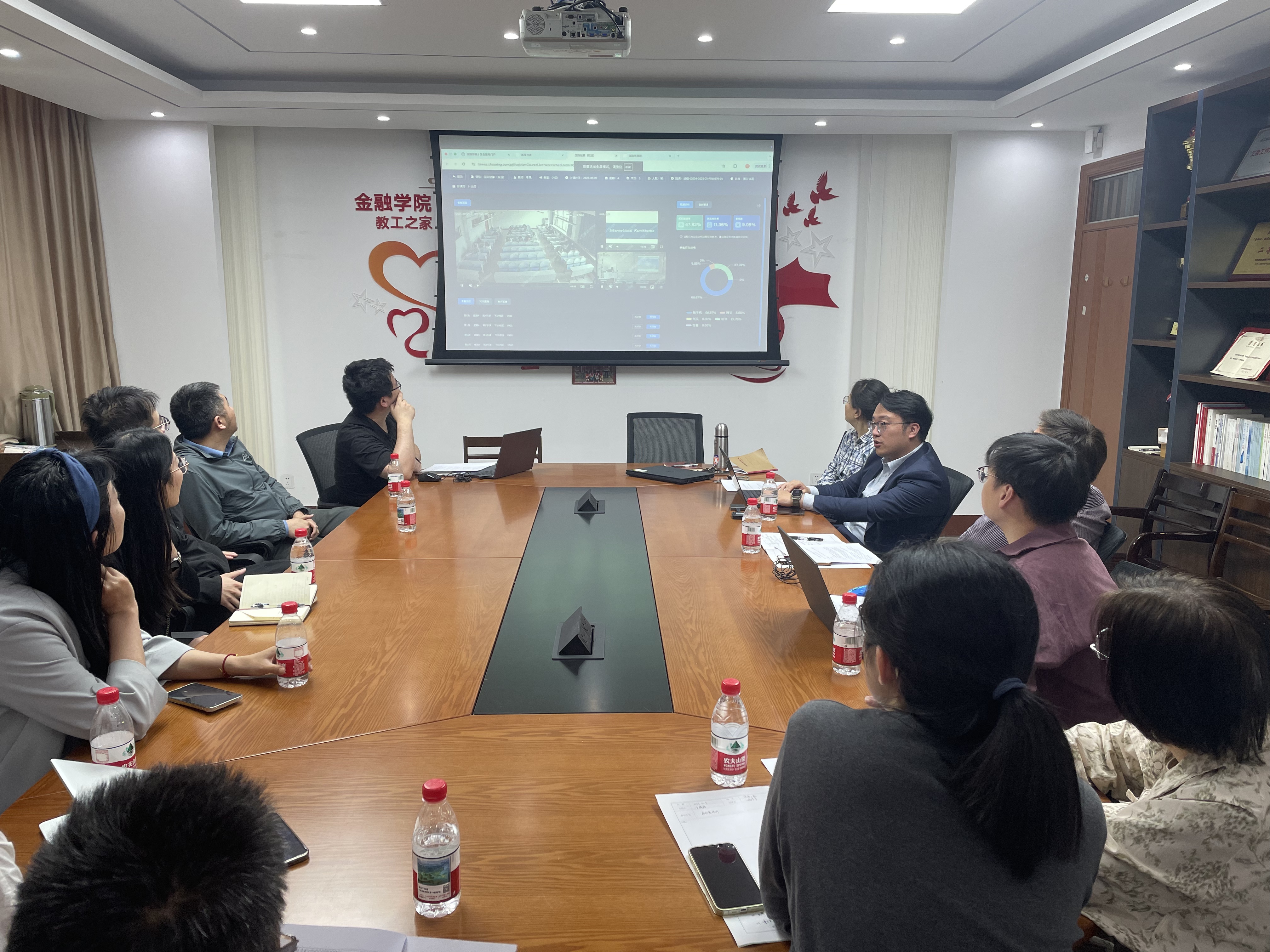 4月15日在3409开展《国际结算》等省级一流课程集体教学观摩活动。通过浙财学堂,学院教学委员会、学院教学督导组及青年教师参与观摩研讨。