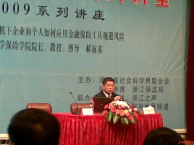 讲座的主题是“当前金融危机下企业和个人如何利用金融保险工具规避风险”,主讲人是国内著名保险专家、中央财经大学保险学院院长郝演苏教授。