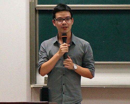 在交流会伊始,由张全达、 周运金、李昂、章寒冰、钱川、汪君毅、施娴勤、孙前冬等8名研一研二学生共同演唱了一首《情歌王》。台上的同学深情歌唱,台下的同学齐声轻和,现场气氛迅速火热起来。