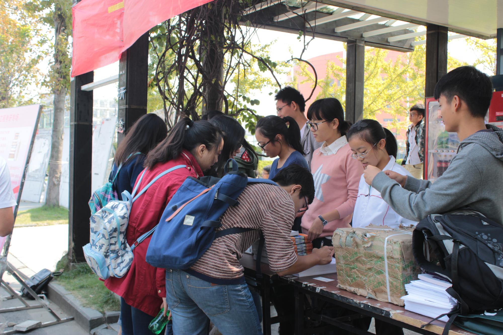 活力四射的开场舞吸引了过路同学们的眼光,也为本次的一元钱活动拉开了序幕。一旁的文化长廊下便活动的主场——研途风景、职来职往、倾情义拍、书香画韵四个板块。 “‘研’途风景”和“职来职往”两个板块为贫苦毕业生提供丰富的考研资料和面试正装。“倾情义拍”则是是由信管学会主持的“金石拍卖会”,“书香画韵”则是义卖下沙二小小朋友的绘画作品及大一新生书法大赛获奖作品,活动所得款项将资助给大四班困难生,为他们求职、考研提供帮助。在活动过程中,信管学会还举行一次拍卖为一元钱活动筹集善款,拍卖现场一片欢乐和谐的氛围,竞价声此起彼伏。一件件爱心拍品也顺利地找到了各自的归宿。另一边,吉祥物的投票选举也是人群紧簇,热闹非凡。