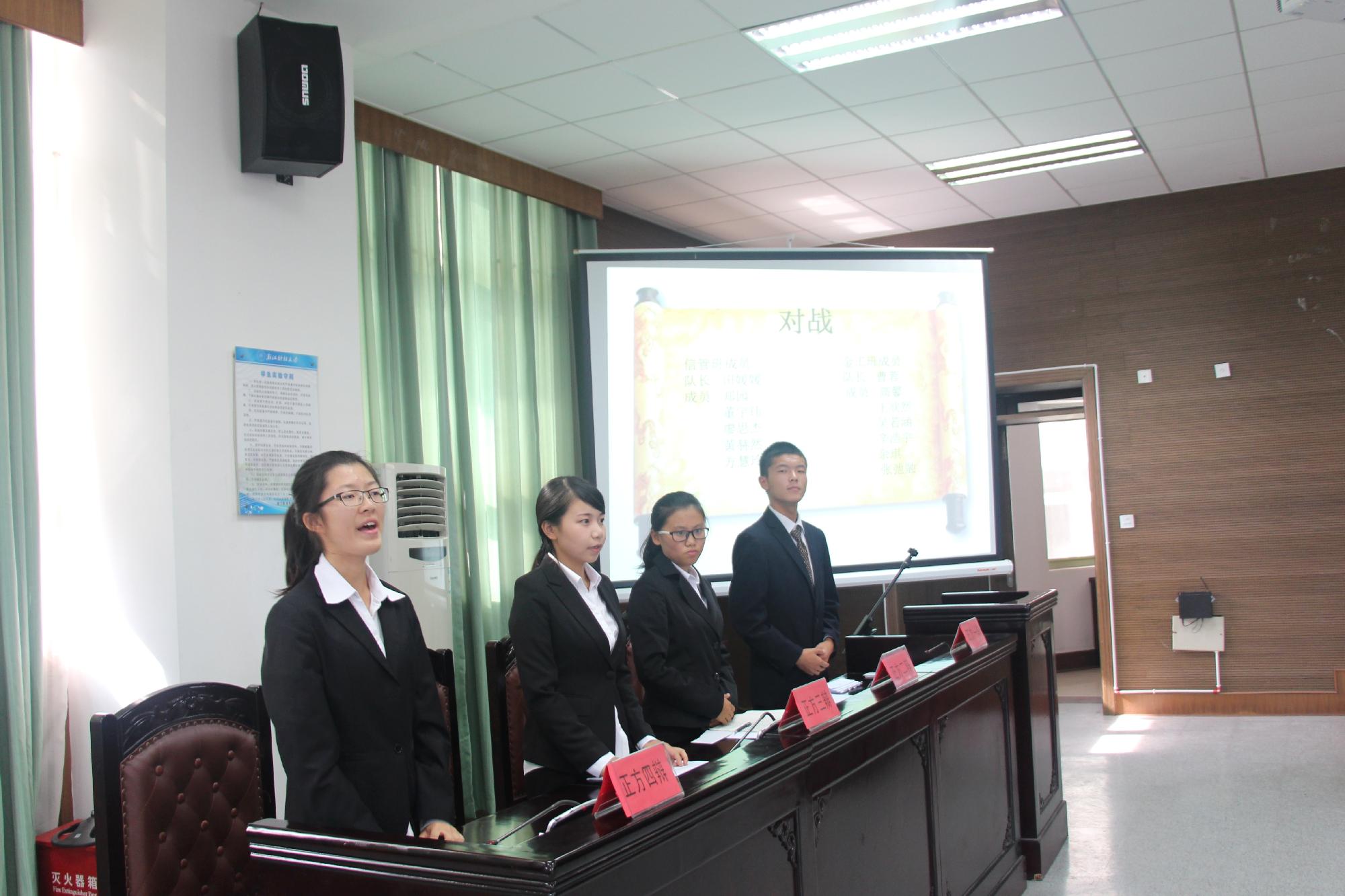 新生辩论赛决赛在法学院201模拟法庭激情上演,此次比赛由水果派