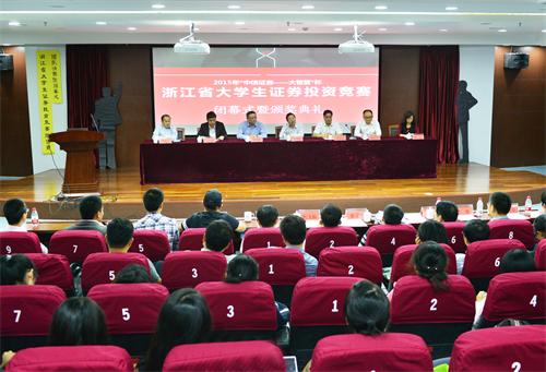 10月17日,浙江省首届大学生证券投资竞赛(邀请赛)团队赛决赛暨闭幕式在我校学术中心召开。浙江省教育厅高教处副处长王国银、我校副校长苏为华,学校教务处和水果派