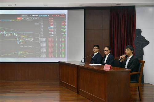 开幕式结束后团队赛决赛答辩拉开序幕,各团队意气风发,准备充分。各组首先以VCR形式介绍投资思路及队员组成,形式多样、生动有趣;接着是PPT和投资策略报告展示,各组通过分析宏观经济走向、行业发展动态、行情历史证明等内容,用独特视角看市场动态;最后是选手代表答辩环节,选手们巧答评委们的犀利提问,独到的见解得到了评委的指导与鼓励。选手们清晰的逻辑、严谨的表述显示出他们对证券市场学术研究的执着与热情。经过将近一天的激烈比拼,最终来自水果派