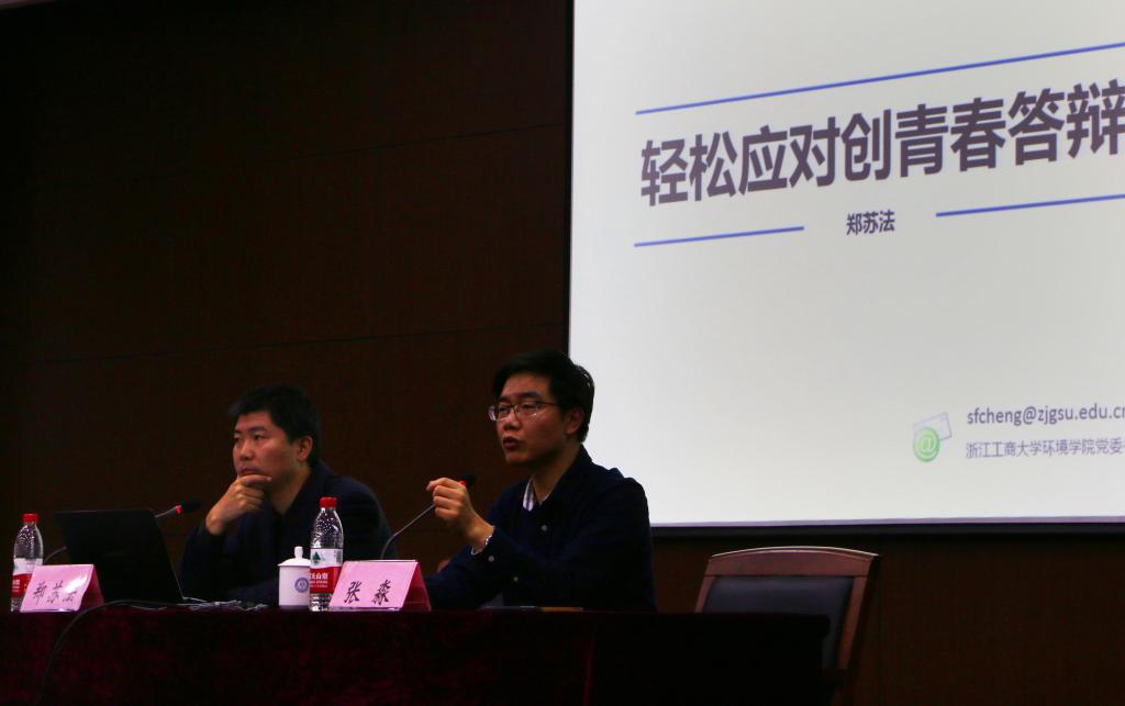 承办的“轻松应对创青春答辩”创新创业大赛决赛指导在学术二报顺利开展。浙江工商大学环境学院党委书记郑苏法教授和我校团委副书记张淼老师分别作为主讲嘉宾和主持人出席本次指导会。