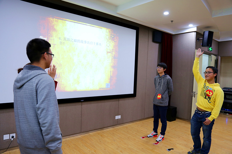 此次比赛一共分为复赛、复活赛、观众互动和决赛四个环节。复赛一开始,十六位选手就进行了激烈交锋,现场气氛紧张而热烈,最后四位选手直接晋级决赛。接着,又从余下的十二位选手中通过成语竞猜的方式角逐出了剩余四位决赛选手。在随后的观众互动环节,现场更是笑声连连,每个同学都积极参与到活动中来。