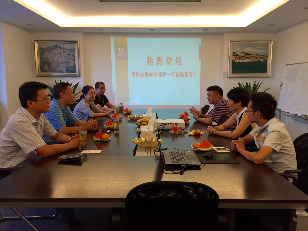 领导班子一行五人走访了我校知名校友企业浙江蓝山投资有限公司,受到了水果派