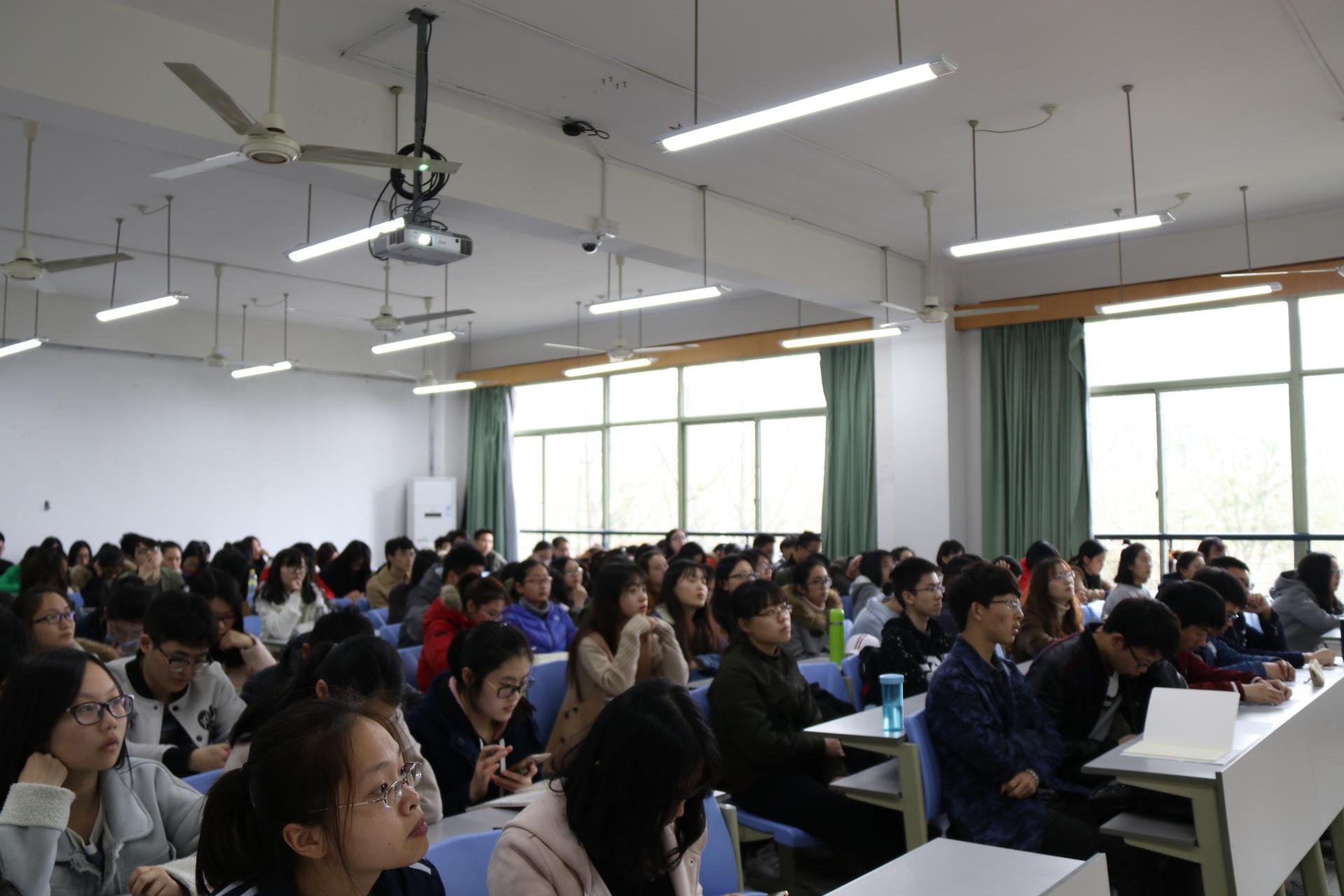 首先,章静怡同学为大家简述了出国留学的一些优势,一方面在如今的社会形势下,读研一定程度上可以增加自己的就业机会,另一方面,也提供了一个进入世界名校并且扩大自己视野的机遇。接着,她为大家详细介绍了去英国读研的申请流程。她强调,对于有出国留学意向的同学,要根据自己出国的目的来选择适合自己的院校与专业,同时为大家介绍了一些英国大学的排名与地理位置供同学们参考。接下来,章静怡同学以自身为例,详细介绍了自己DIY申请的准备过程,其中包括如何准备语言考试、如何提高自己在大学期间的均分、如何准备申请材料等等。最后是现场交流环节,大家踊跃提问,现场气氛热烈。