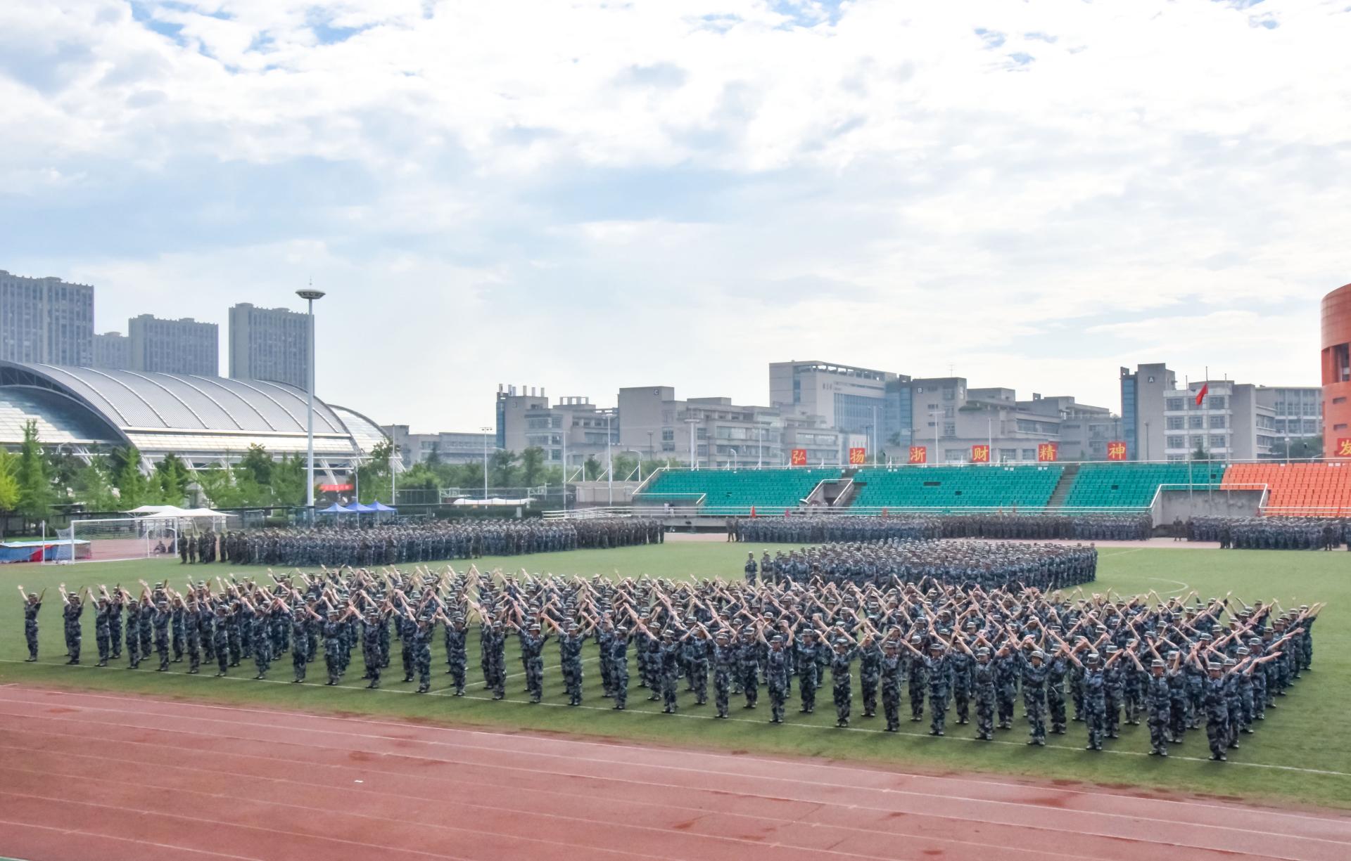 方阵喊着“热血金融,携笔从戎,神勇四营,谁与争锋!”的嘹亮口号,迈着矫健的步伐正步通过主席台,接受与会领导的检阅,展示了金融学子自强不息、报效祖国的壮志豪情和蓬勃朝气。