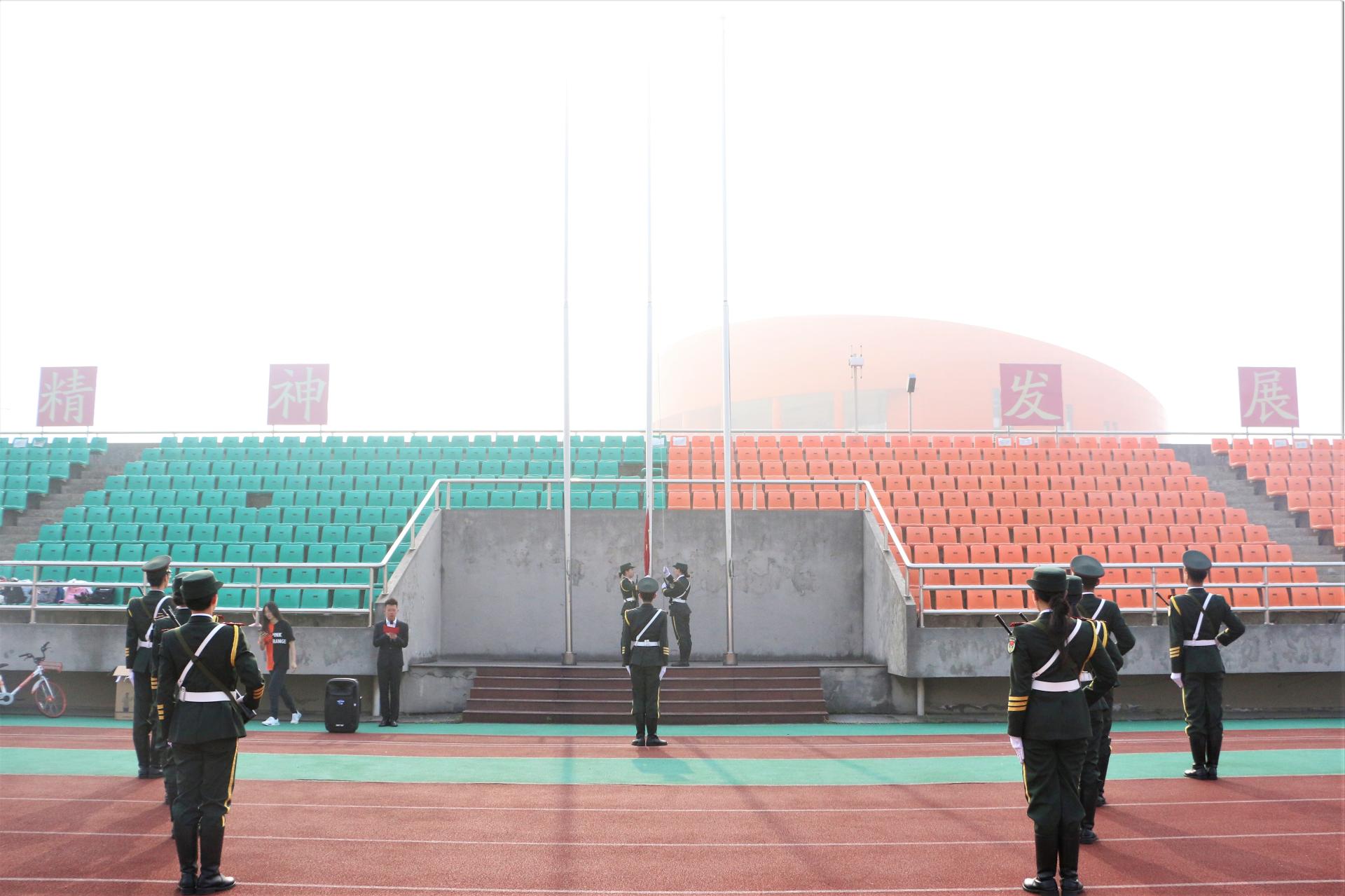 随着铿锵的脚步声,国旗护卫队的成员们护送着神圣的国旗来到主席台的中央。在激昂的国歌中,红旗缓缓升起,全体师生行注目礼。在庄严的氛围中,学生代表王光育、宋鹏举发表国旗下讲话:倡导同学们不忘初心、注重实干、知行合一;牢记习近平总书记的殷切希望,努力成为有理想、有学问、有才干的实干家。