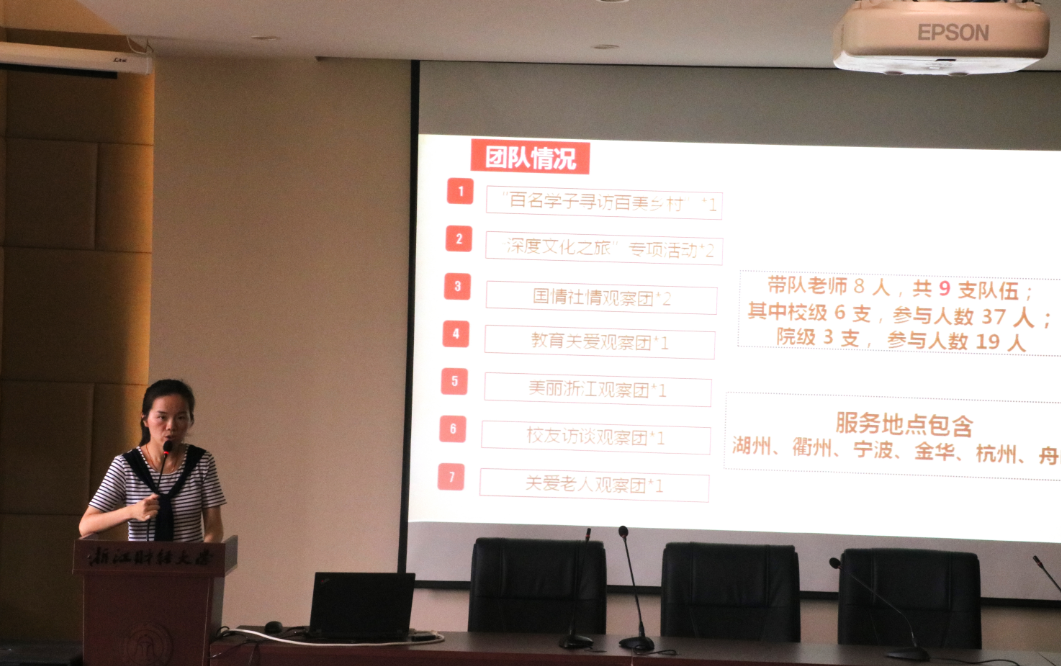 暑期社会实践出征仪式在学院楼202报告厅举行。学院党委副书记叶秀、团委书记翟丽媛、辅导员沈耀杰、聂亚平以及水果派