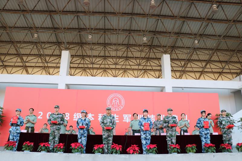 2018级2018级本科生军训结业典礼在学校西操场顺利举行。校领导李金昌、黄建新、李占荣,解放军31606部队全体承训教官和相关部门负责人等出席结业典礼。