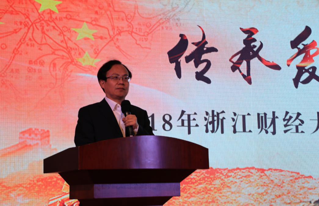 黄建新在致辞中指出,在改革开放40周年之际,学校举办纪念“一二·九”运动大型诗歌朗诵比赛更具有特殊的意义。广大浙财学子要在习近平新时代中国特色社会主义思想的指引下,铭记这段历史,珍惜改革成果,努力践行“爱国、励志、求真、力行”的要求,争做德智体美劳全面发展的社会主义建设者和接班人,在祖国的万里长空放飞青春梦想,谱写无愧于时代的青春赞歌。