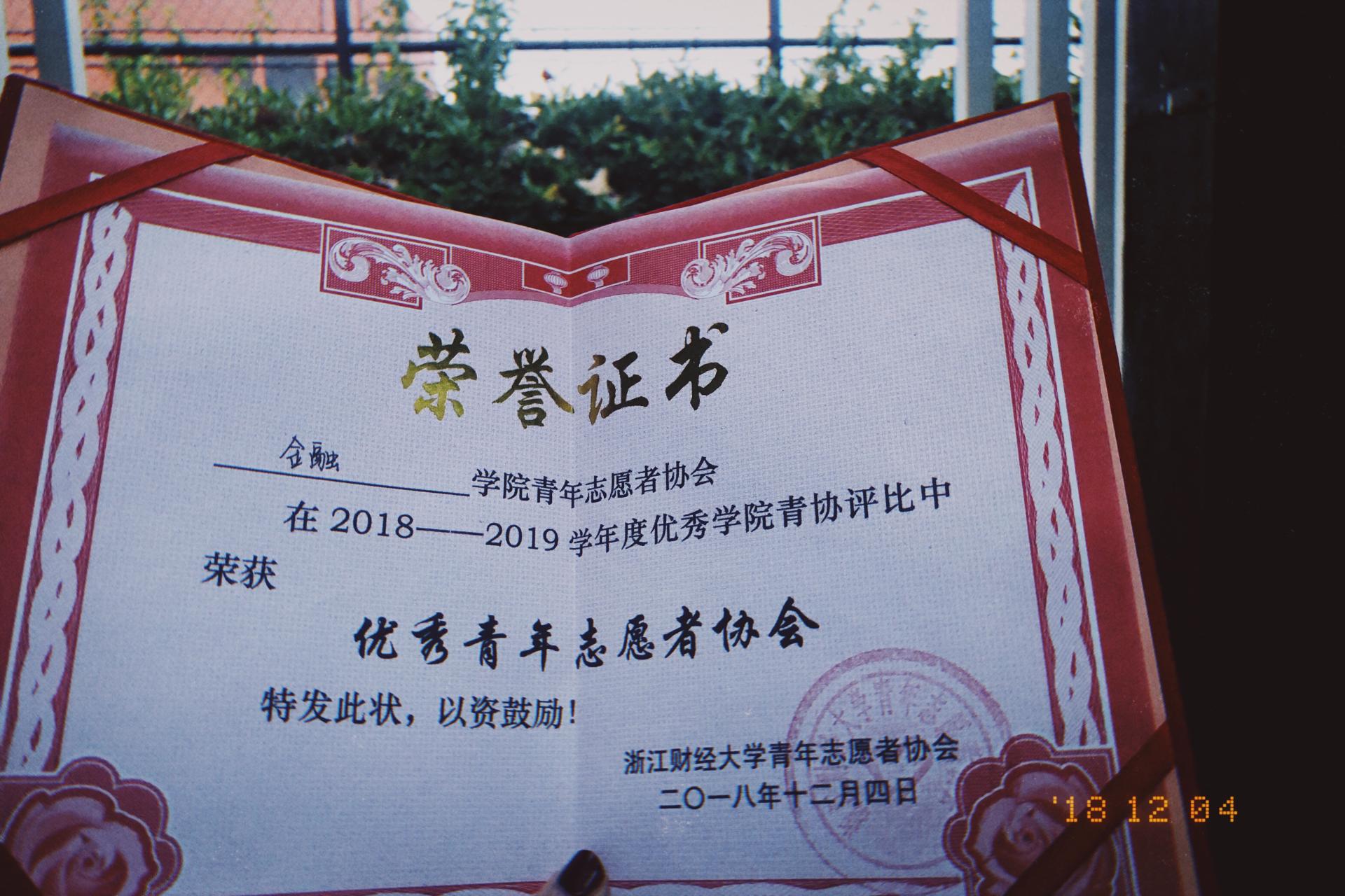 青年志愿者协会在评比中喜获“优秀青年志愿者协会”荣誉称号。
