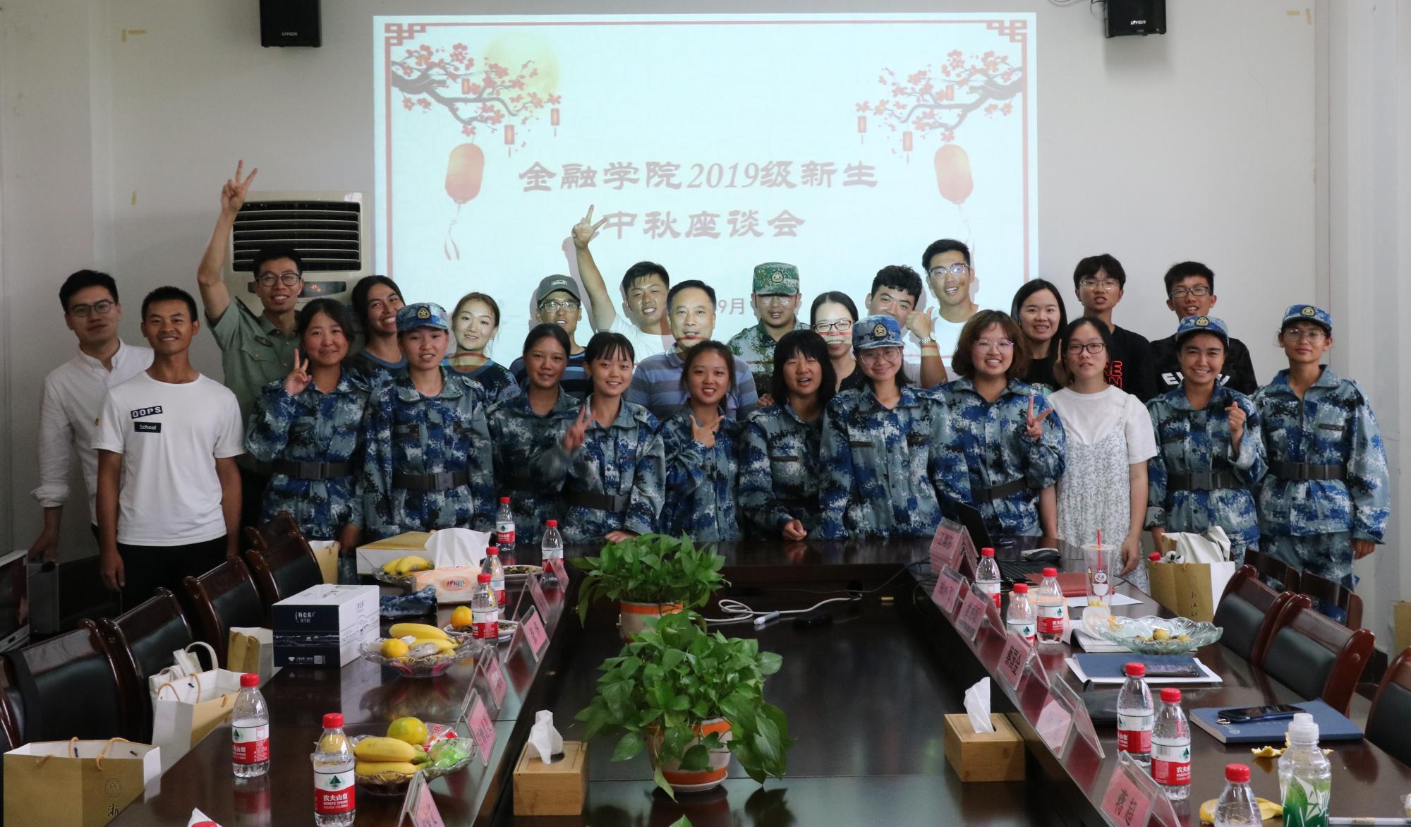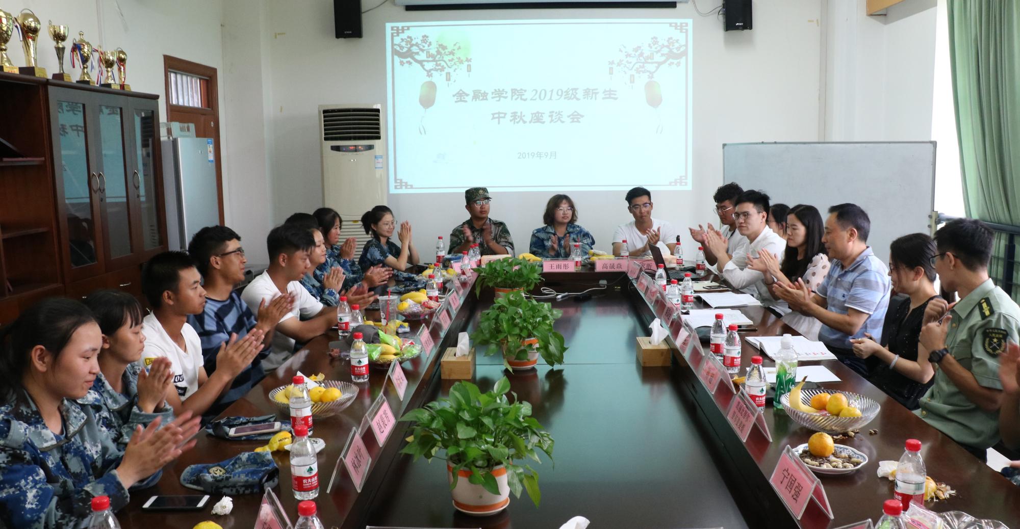 2019级新生中秋座谈会在学院楼422会议室顺利举行。院党委书记蔡国金、党委副书记叶秀、新生辅导员蒋超、戎小飞及2019级部分新生们共同参与了本次座谈会。会议由学办副主任翟丽媛主持。