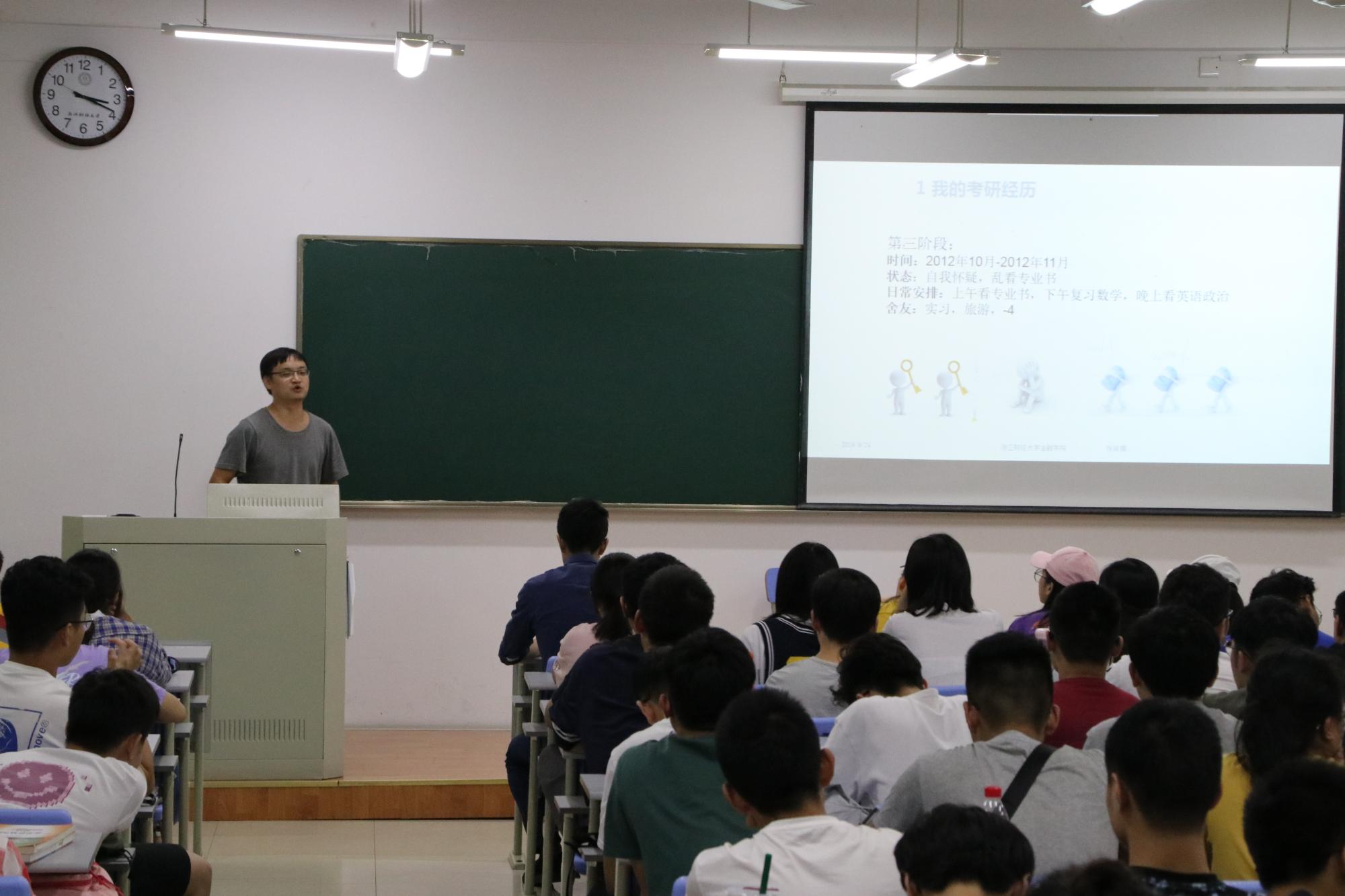 会上,朴院长围绕“2020年考研国家线影响因素”、“考研的必要性”、“考研的基本常识”等要点全方面、多角度解读了考研的政策和意义,鼓励学生要结合自己的兴趣和实力报考适合的学校与专业。张硕男博士结合自身的考研经历,向同学们传授了有关考研初试和复试的宝贵经验,勉励大家通过自己坚持不懈的努力,实现自己的目标。