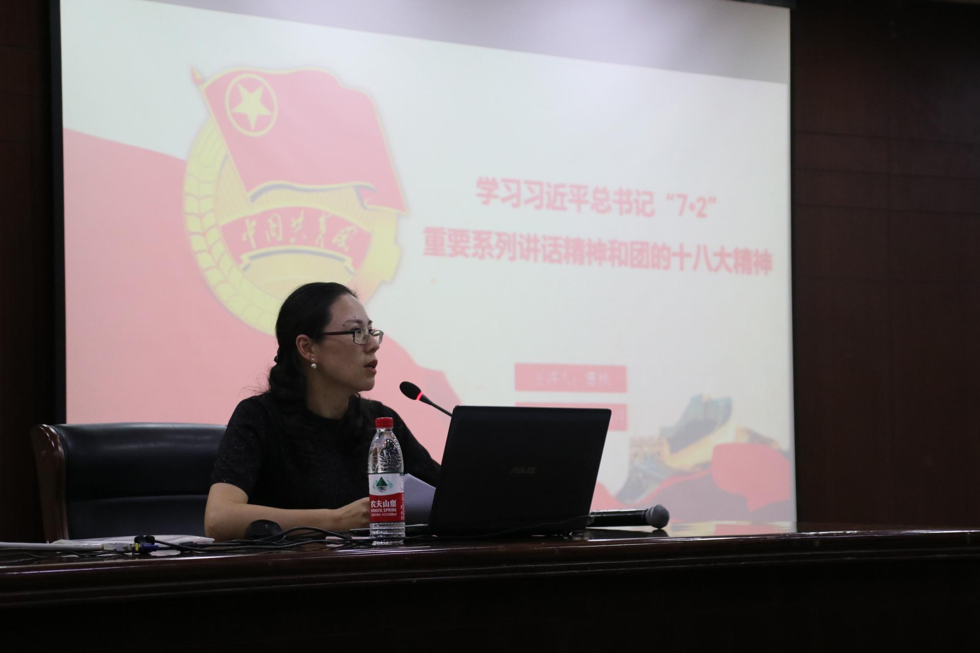 曹桢老师以“学习习近平总书记‘7·2'系列重要讲话精神和团的十八大精神”为主题,向同学们系统阐述了共青团员的职责使命以及习近平总书记对广大青年的殷切希望。不仅让在座的同学们感受到了党中央对青年们的关心照顾,也进一步提升了在座同学身为一名共青团员的自豪感。