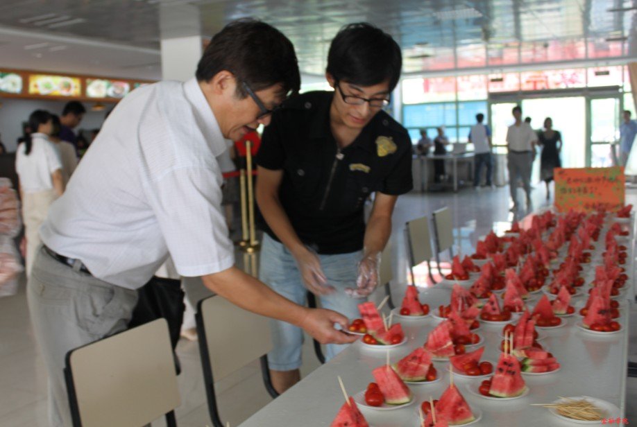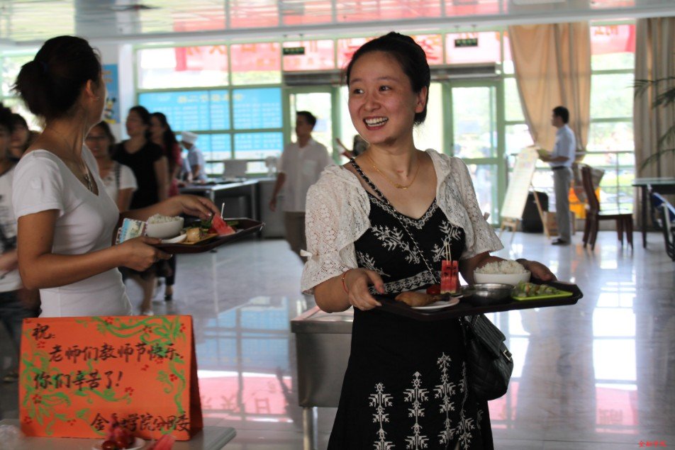 活动在学术餐厅进行,同学们将亲手制作的并事先装盘的水果赠送给就餐的老师,并致以节日的问候,道一声:“老师,您辛苦了!”