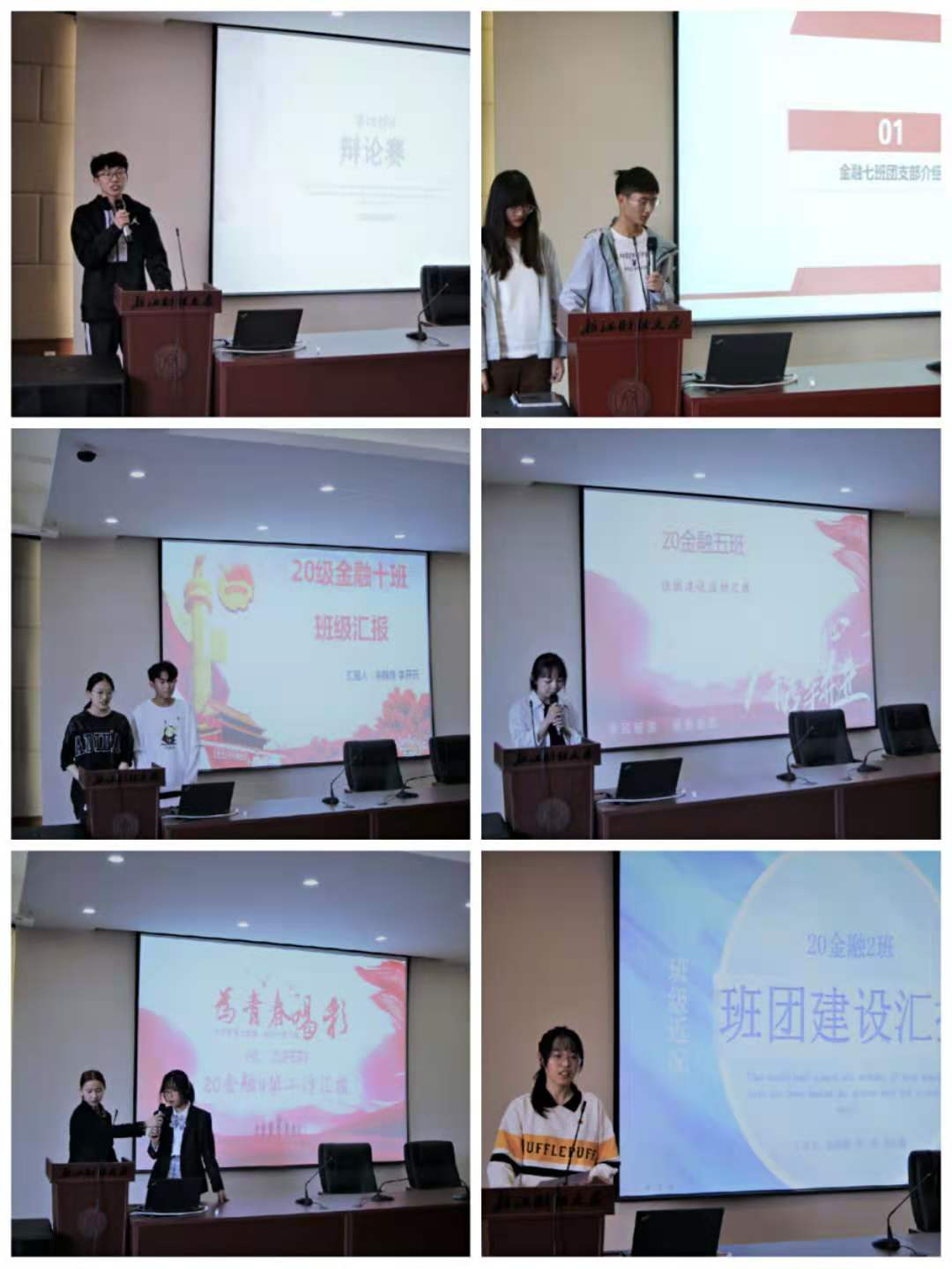 接着,2020级各班级围绕思想引领、组织建设、学风建设、文体活动等方面行了班团建设情况汇报,充分展现了金融新生班级良好的班风和学风。