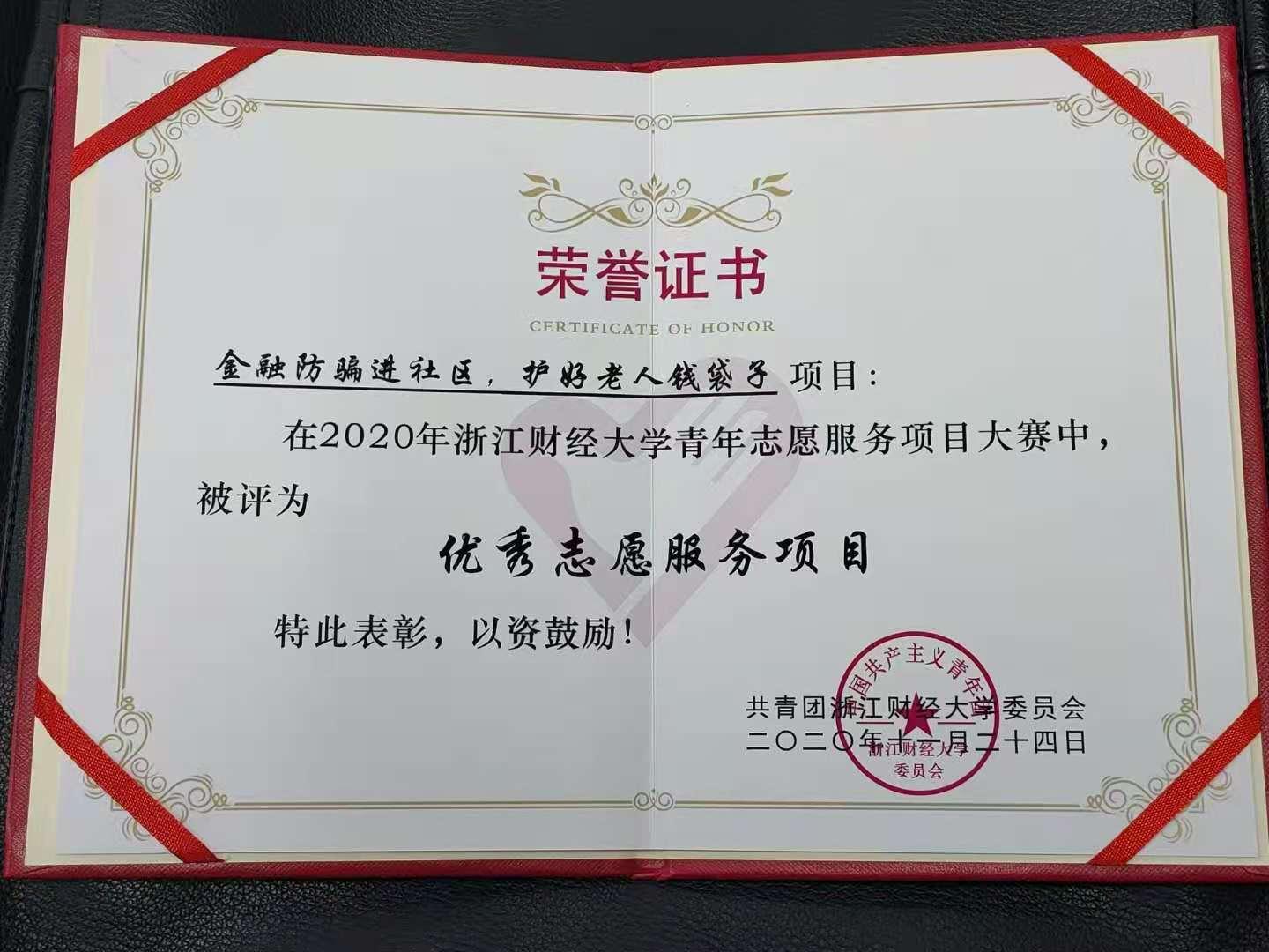 青志的“金融防骗进社区,护好老人钱袋子”活动被评为“校优秀志愿项目”,水果派