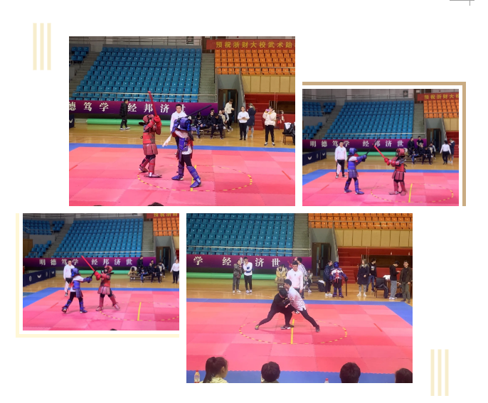 运动员凭借自身的基础和努力训练,经过激烈的争夺,取得了优异的成绩。其中20中英金融1班的李芷彤同学获得竞技女子55kg以下项目的第三、女子短兵第五。19中英金融1班的邹杨同学获得男子推手80kg以上项目的第三。19中英金融2班的高晟焱同学获得男子短兵第五。18金融4班的盛烨安同学获得男子推手80kg以下项目第五。