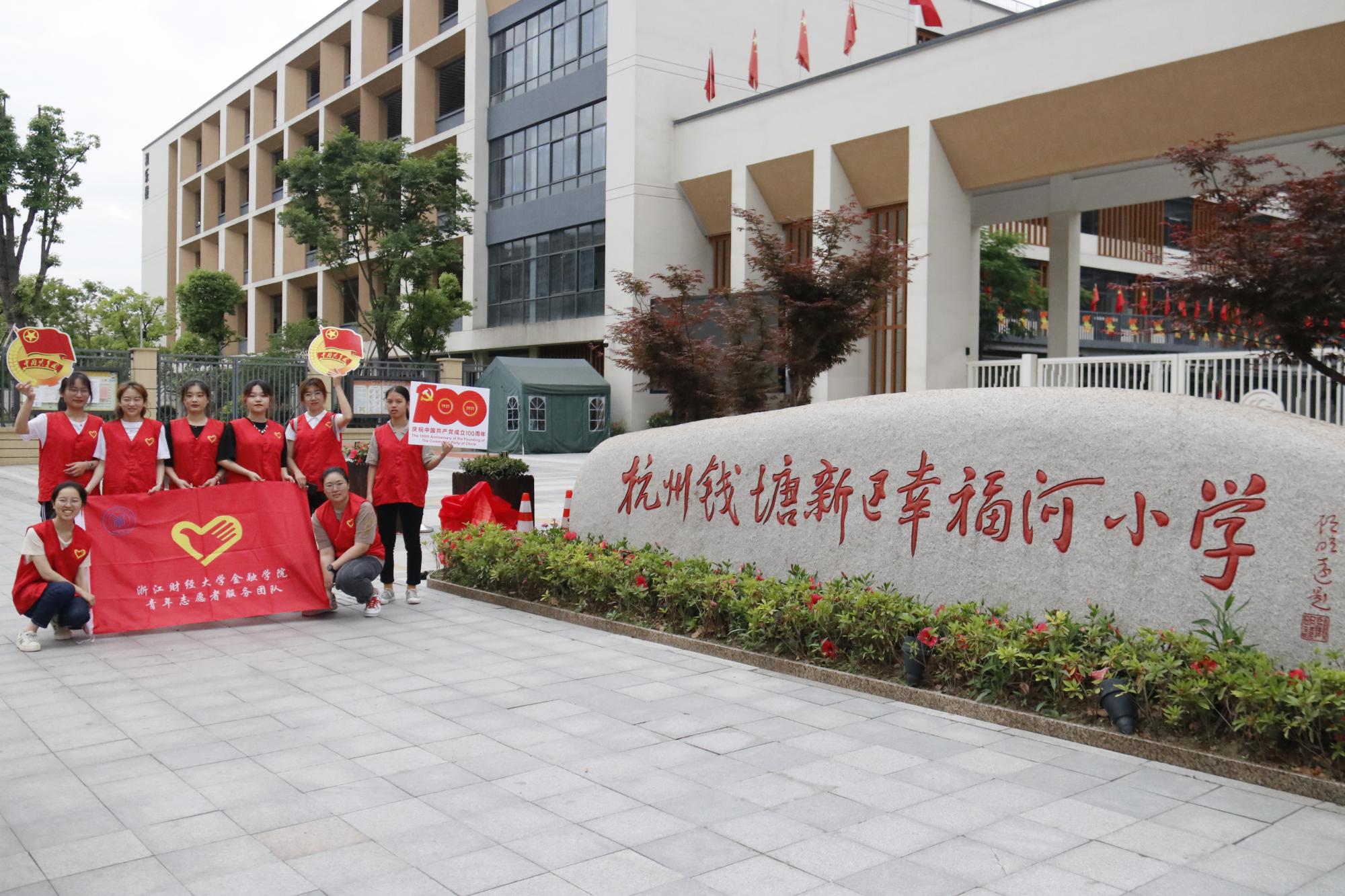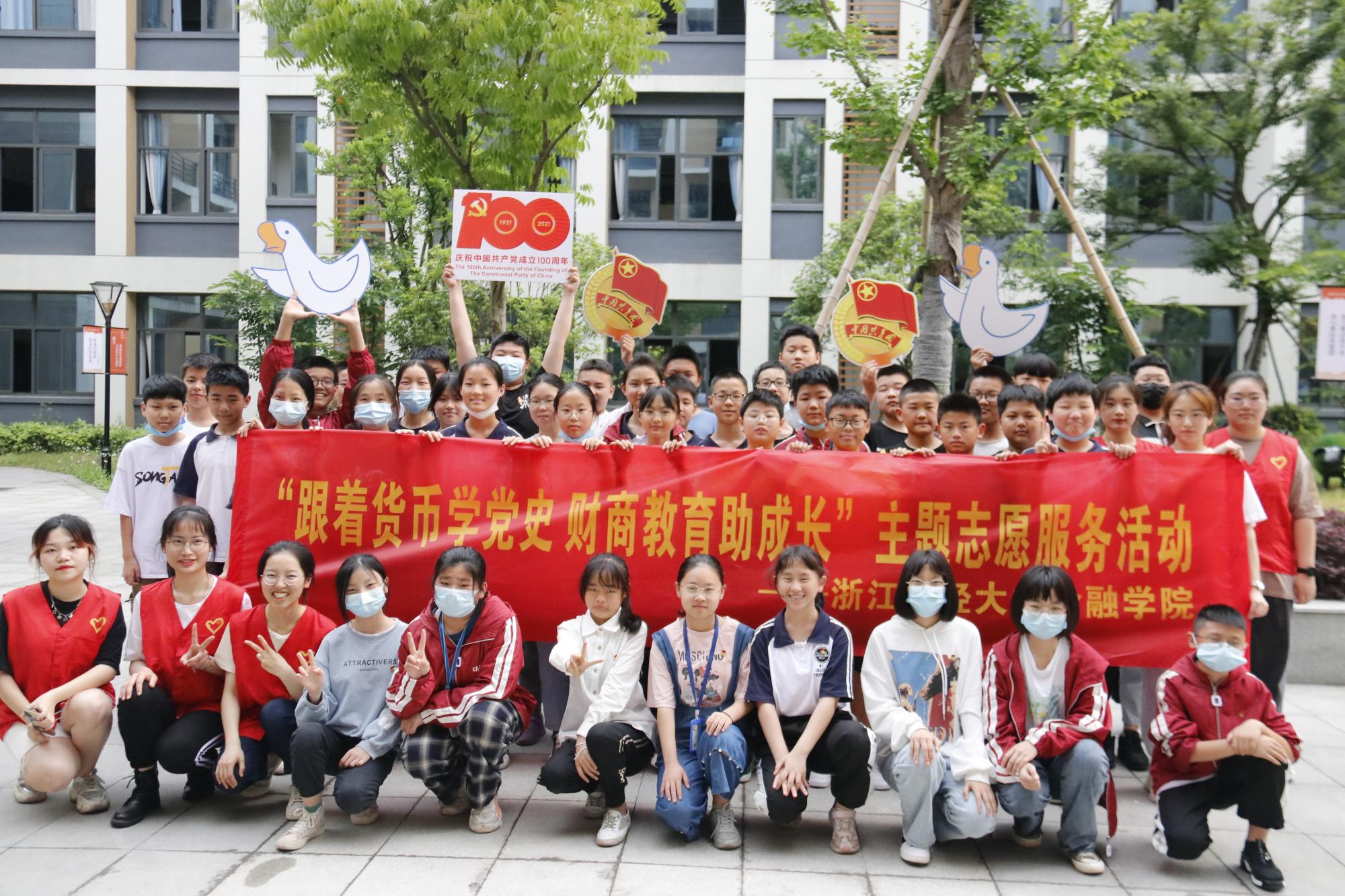 专职组织员翟丽媛、学院团委书记王伟伟、金鹰党建工作站成员及学院青年志愿者中心成员前往钱塘区幸福河小学开展“跟着货币学党史,财商教育助成长”主题志愿服务活动。