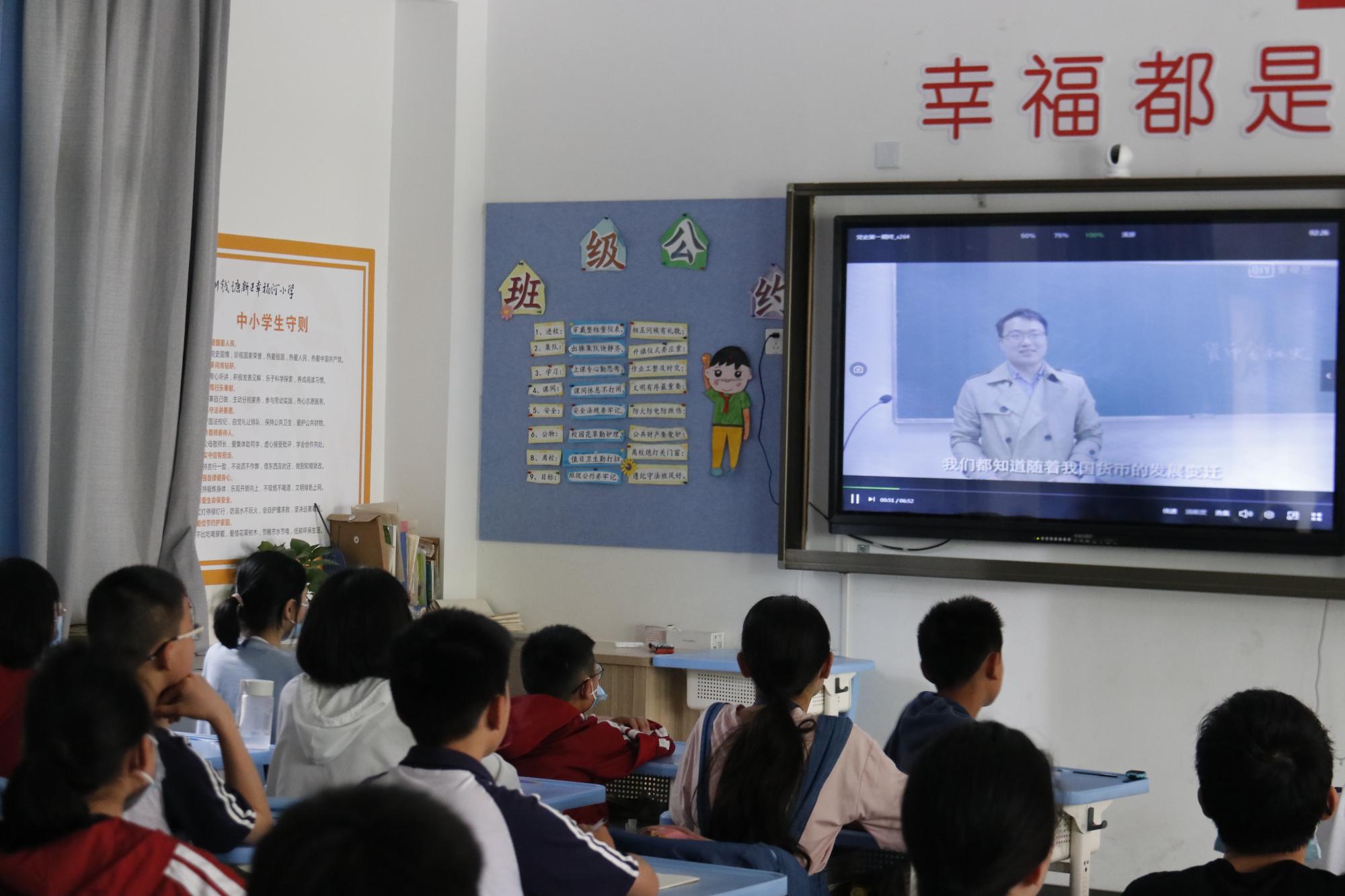 金鹰党建工作站的成员们为大家播放了学院师生原创视频《跟着货币学党史(第一期)》,视频讲述了清末以来,随着帝国主义的侵略和封建政治的解体,我国的币制即开始陷入混乱状态,不仅银两、银元混用,地方银行、外国银行、私营行庄也发行不同的纸币,通过该段货币历史变迁,串联起五四运动、中共一大、中共二大、国民革命、五卅运动、北伐战争等党史上的重要事件,让同学们感受中国共产党百年辉煌成就背后的奋斗历程。