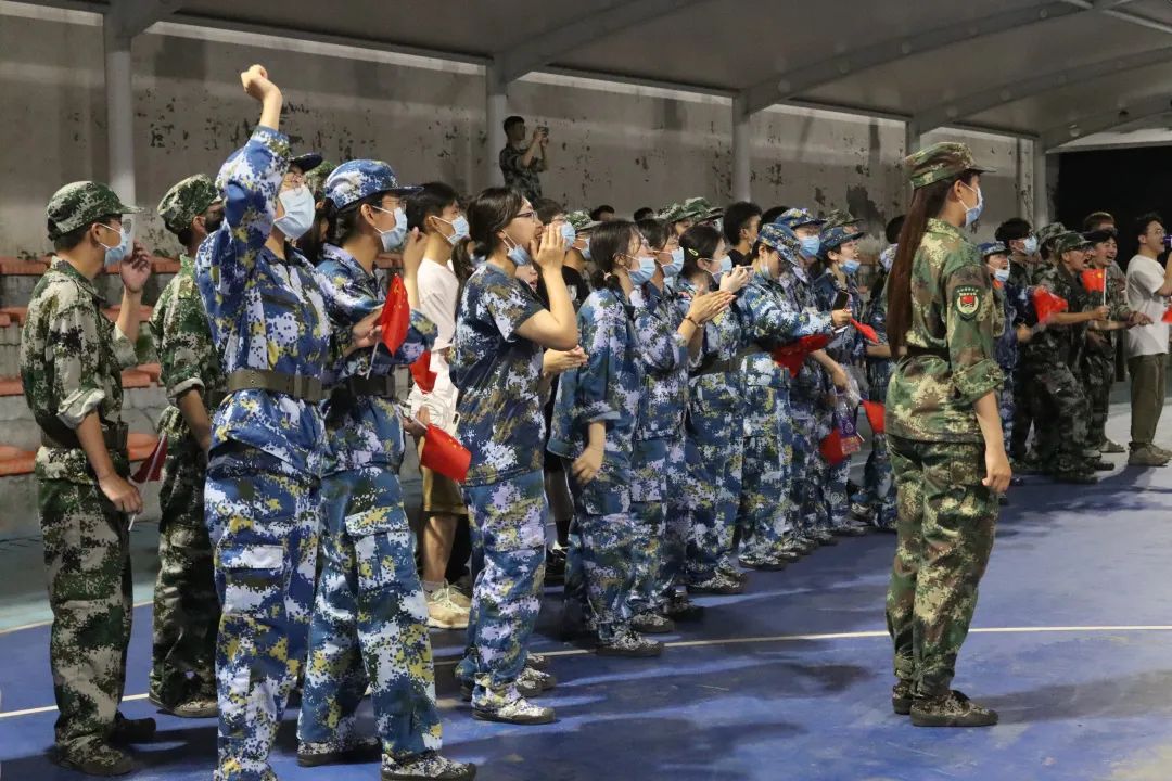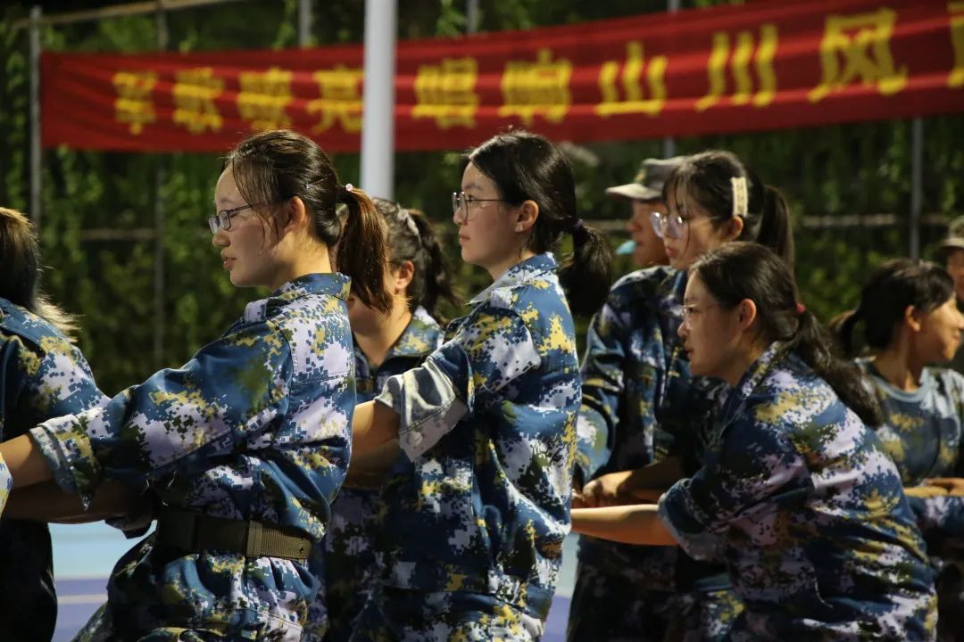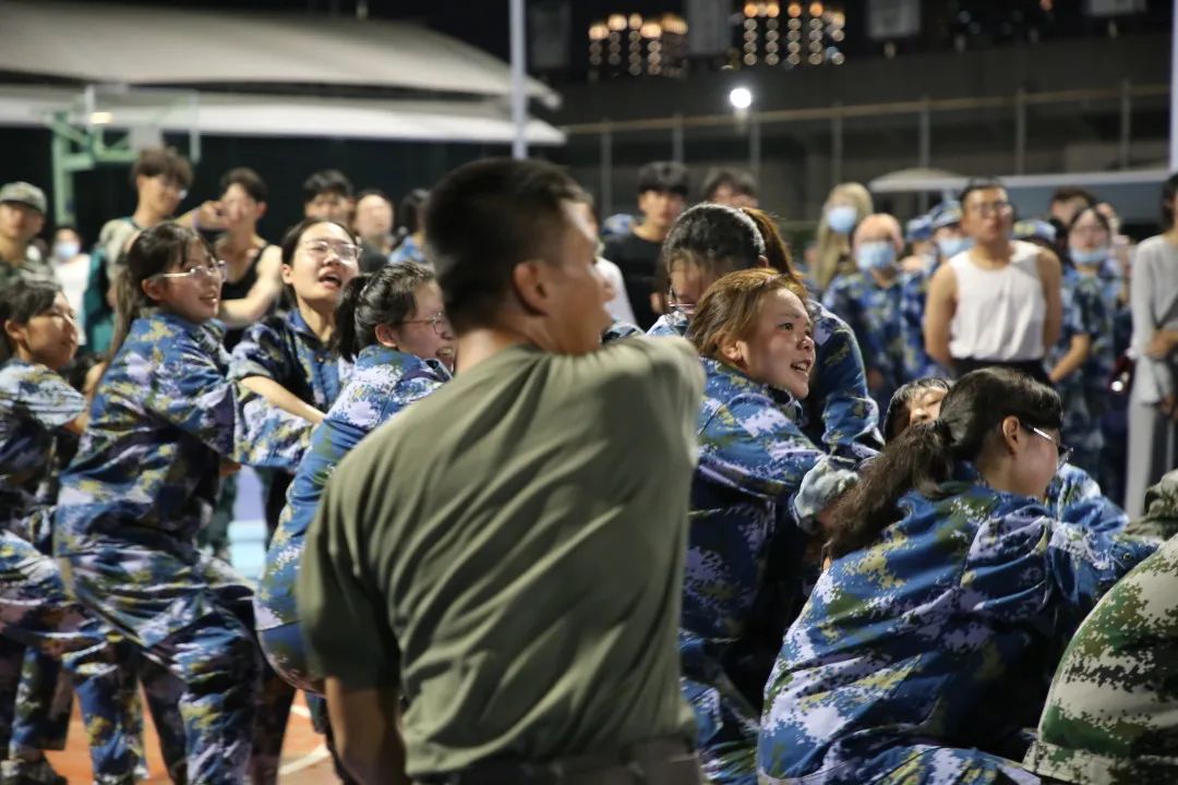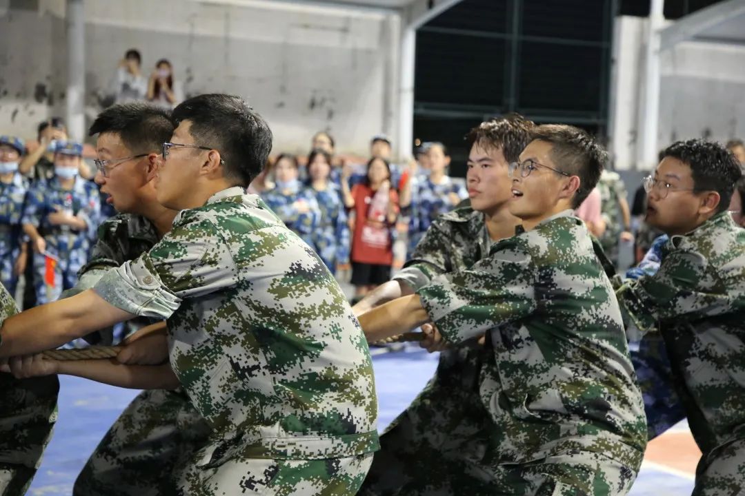 2020级军训拔河比赛在灯光球场拉开帷幕。在这场激烈的角逐中,水果派