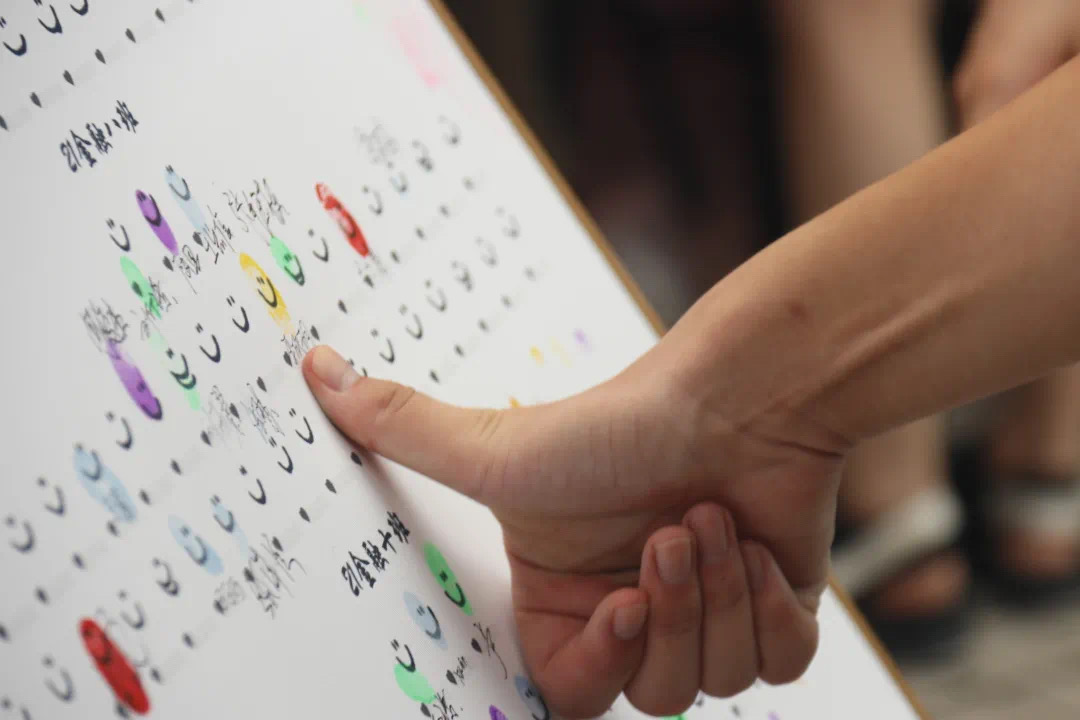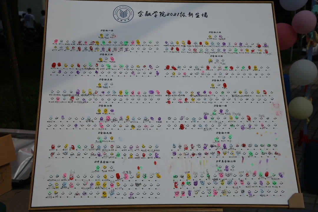 学院专门设计了新生墙,摁下彩色的手印,签下姓名,新生们留下了加入水果派