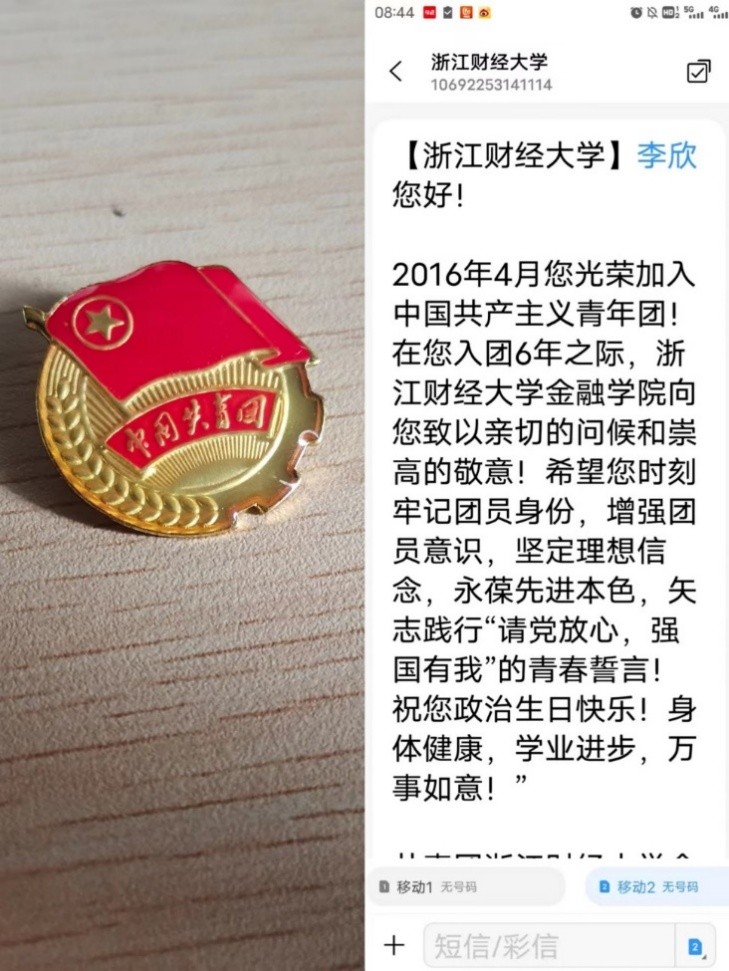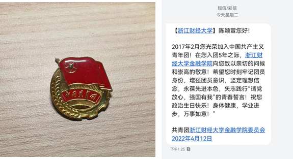 972位学子收到了学院团委发送的“入团纪念日”短信。正值节日前夕,收到这条特别祝福短信,同学们深受鼓舞,也倍感温暖,纷纷晒出照片,表达着自己的热烈情感。