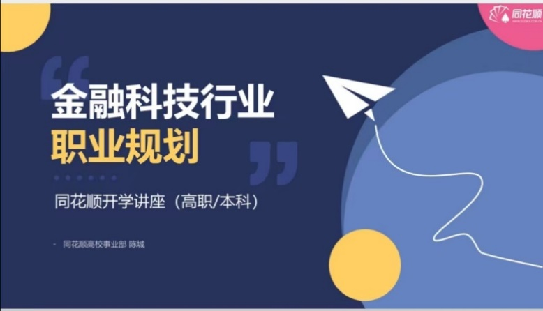 2022年4月26日下午,金融科技行业就业形势分析与职业规划讲座顺利开展,同花顺B2B集群上市高校政府线HRBP黄星毓女士、同花顺高校量化负责人陈城先生与同花顺高校运营经理李潇先生应水果派