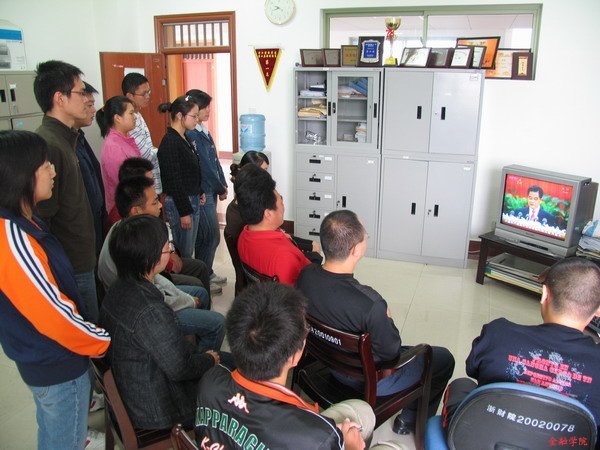十七大开幕式结束后,学院党总支书记吴忠希同志作了重要讲话。他指出,组织收看十七大开幕式是一项重要的学习活动,它对增强广大师生的政治责任感及爱国主义情怀有极大的意义。认真收看十七大,为今后切实贯彻十七大精神开了一个好头,要以此为契机,动员全学院掀起学习和宣传十七大的热潮。会后,一位学生党员感慨地说:“作为一名学生党员,与学院老师一同收看十七大、听取十七大精神对于增强自身的党性修养有重要的意义,它极大地丰富了我们的政治生活。”